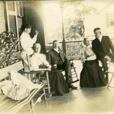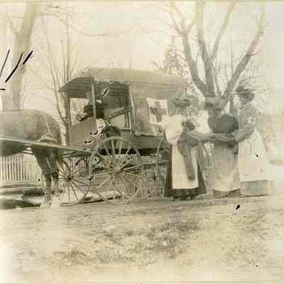 Album 6) About half photos not dated; about half dated Jul 4, 1904, to Jul 4, 1906 (domestic scenes, gatherings, foreign travel, on the water, Mannings Ferry, short hills. Scanned 5 photos: page 10 Harper House, Harpers Ferry; page 12 Wickliffe House in Virginia; page 45 "White House Camp" July 7-9, 1904; page 73 "First Aid to the Injured" April 13, 1905; page 87 Mountain Mission, February 24, 1906)