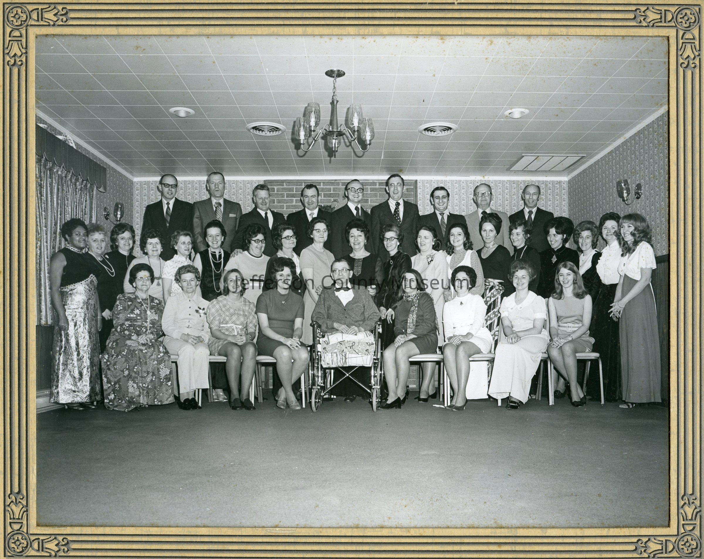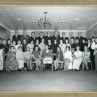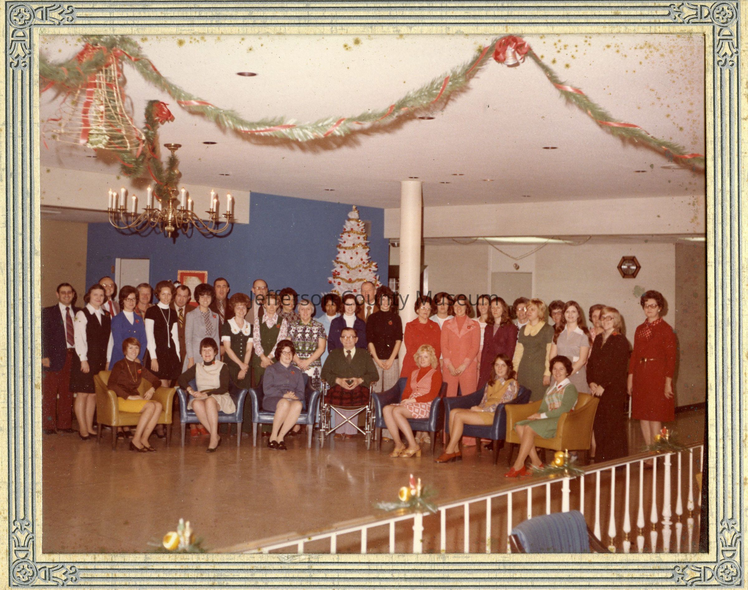 16) Black and white photo of Bank of Charles Town employees, Christmas 1972 (includes Shirley Hunt and Linda White)