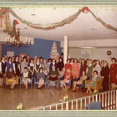 17) Color photo of Bank of Charles Town employees, Christmas, unknown year (includes Shirley Hunt and Dodee Wenger)