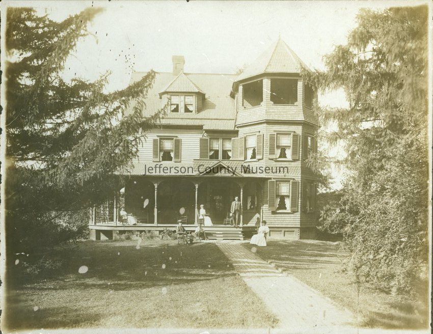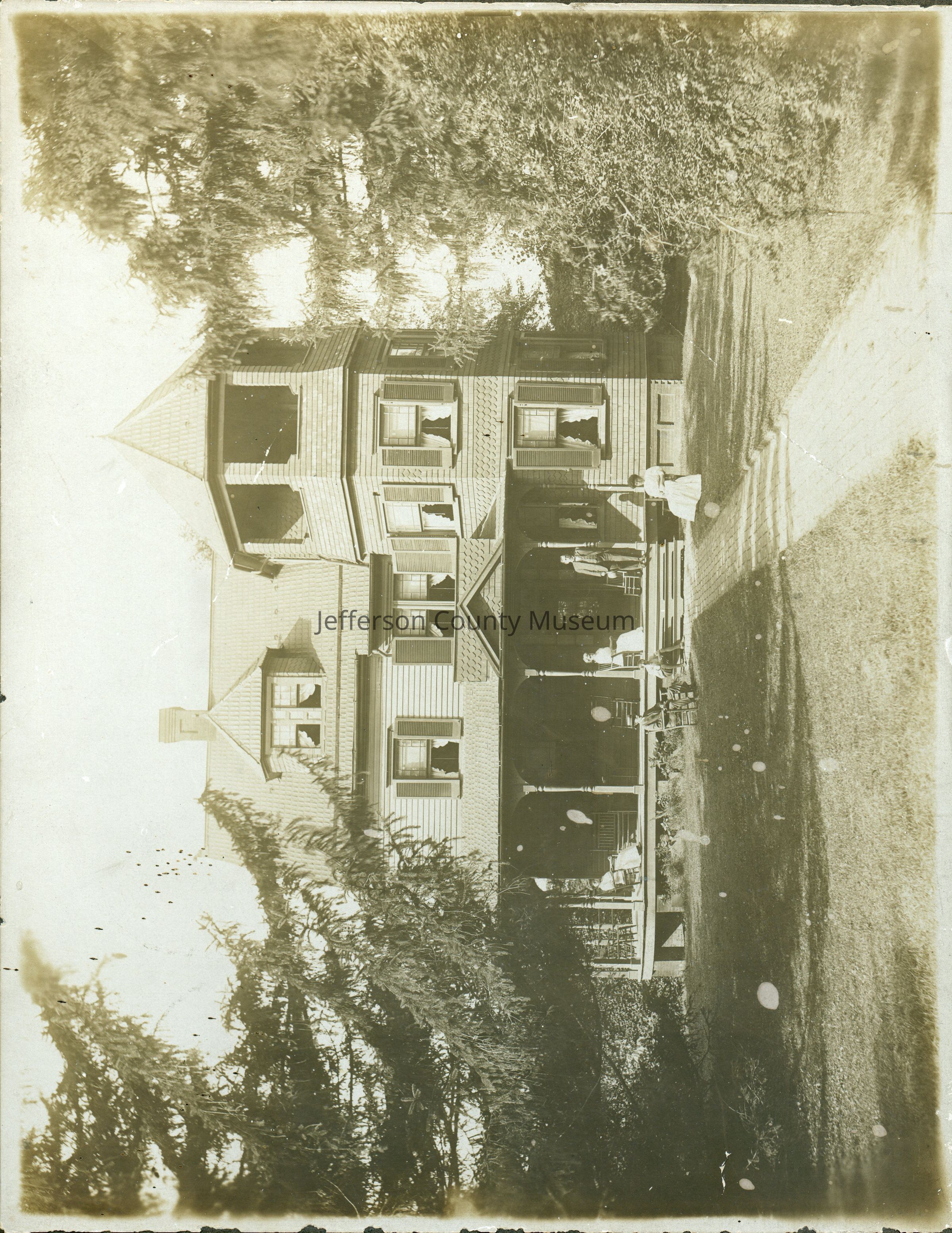 Col. R. P. Chew standing on porch of his house leaning against post. Four members of his family are seated on porch and lawn. Mounted on thin paper board.Acquisition