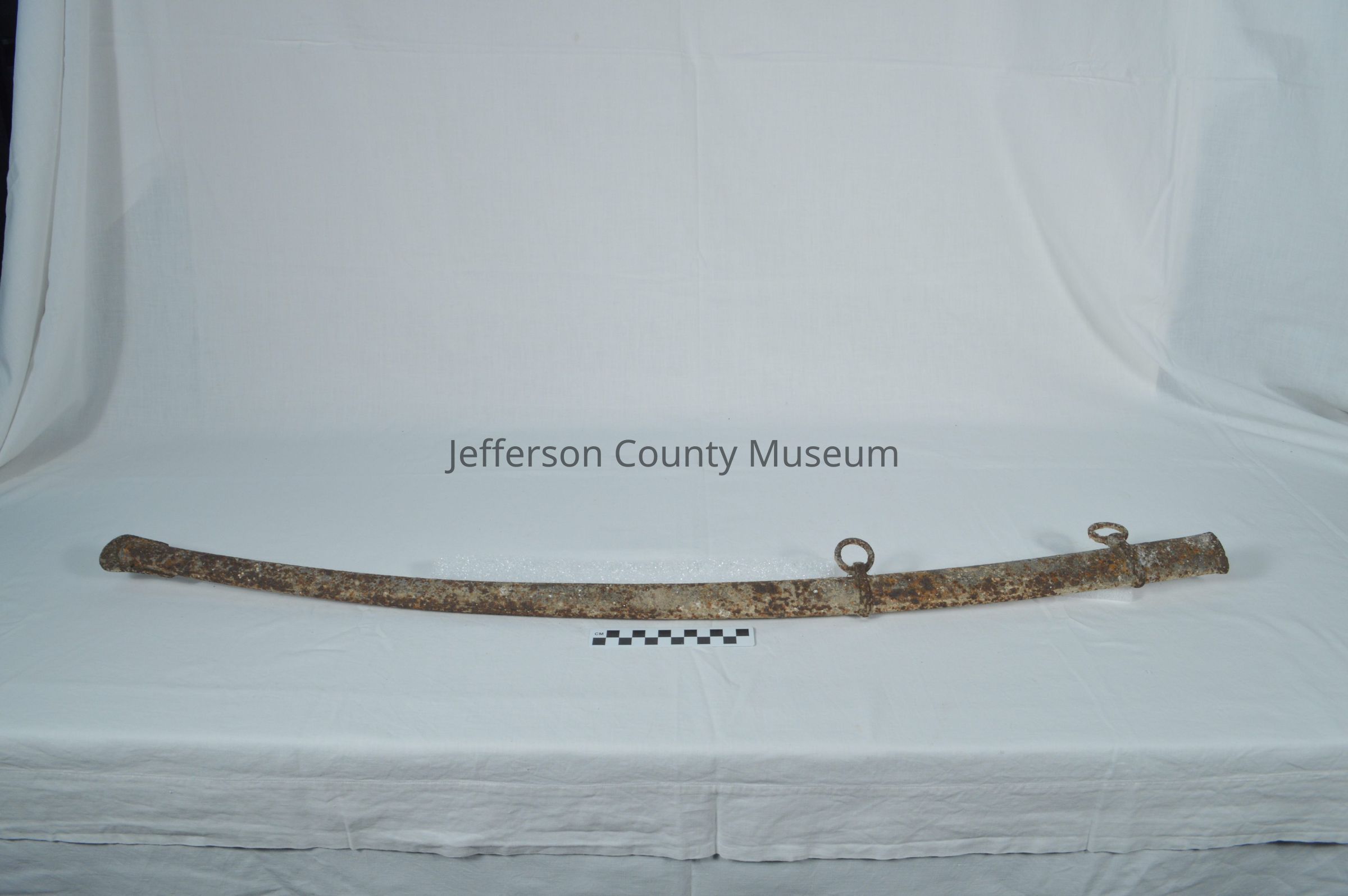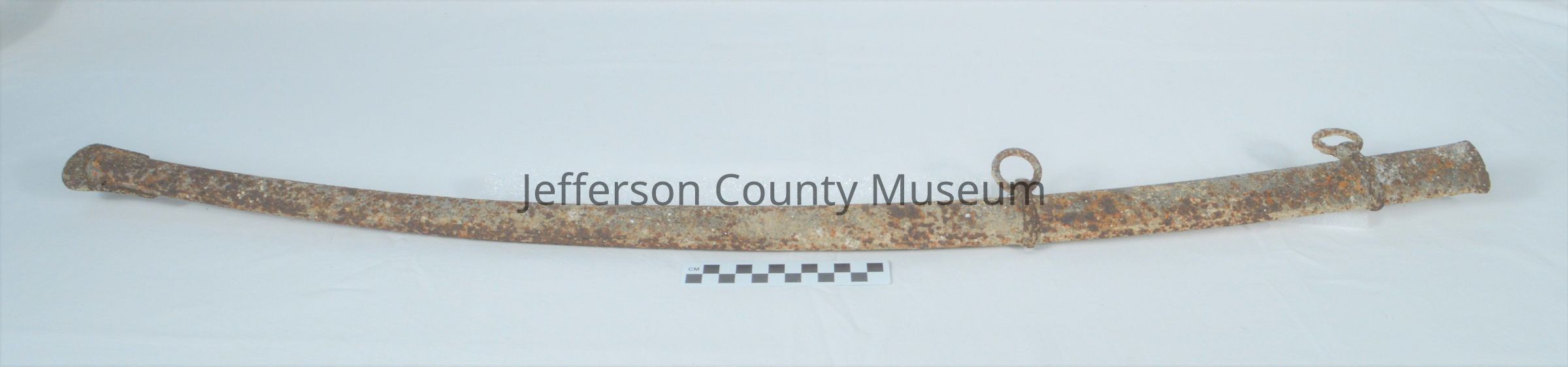 U. S. Army sword scabbard found in Evitts Run, near Perry's Pond ("The Hill"), Charles Town, sometime around the 1980s. Slight curve.