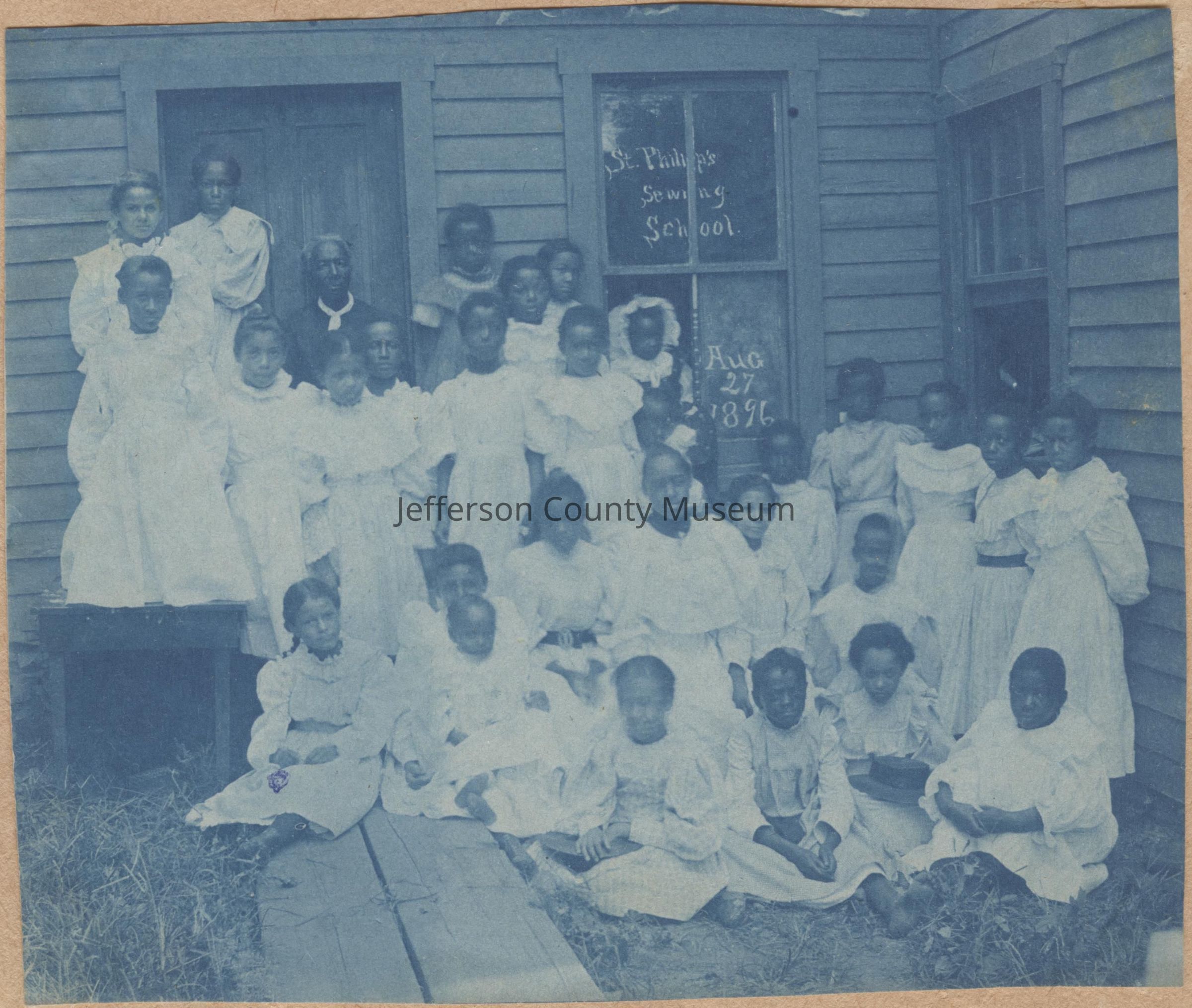 St. Philip's Sewing School Digital image of a cyanotype from an Ambler Family photograph album (ARC621).