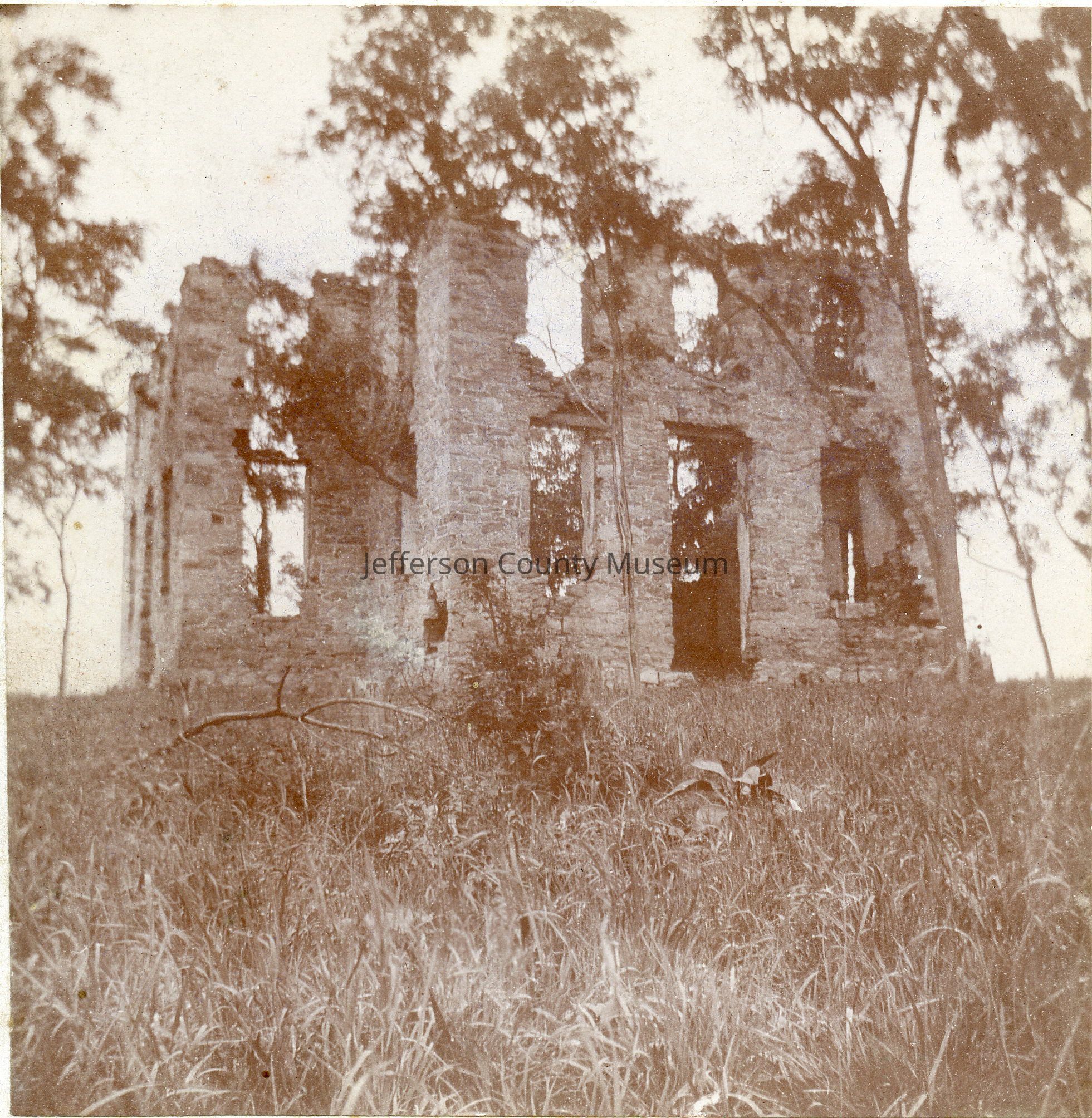 Ruins of St. George's Chapel. Written in black ink in script at bottom "St. George Chapel Charlestown, WVa". Mounted on hard cardboard.Acquisition