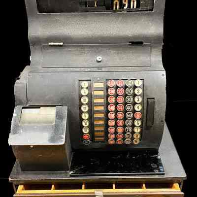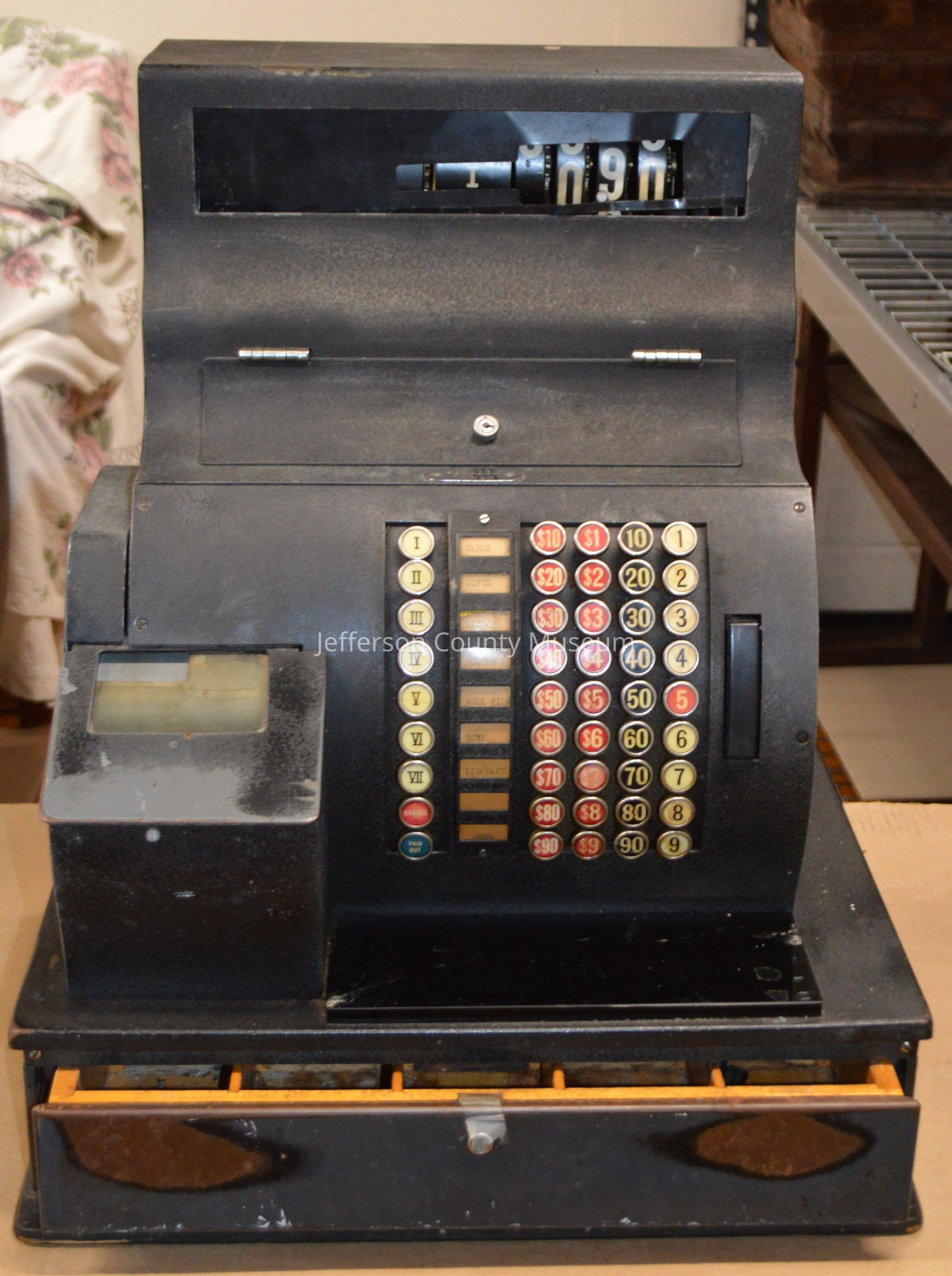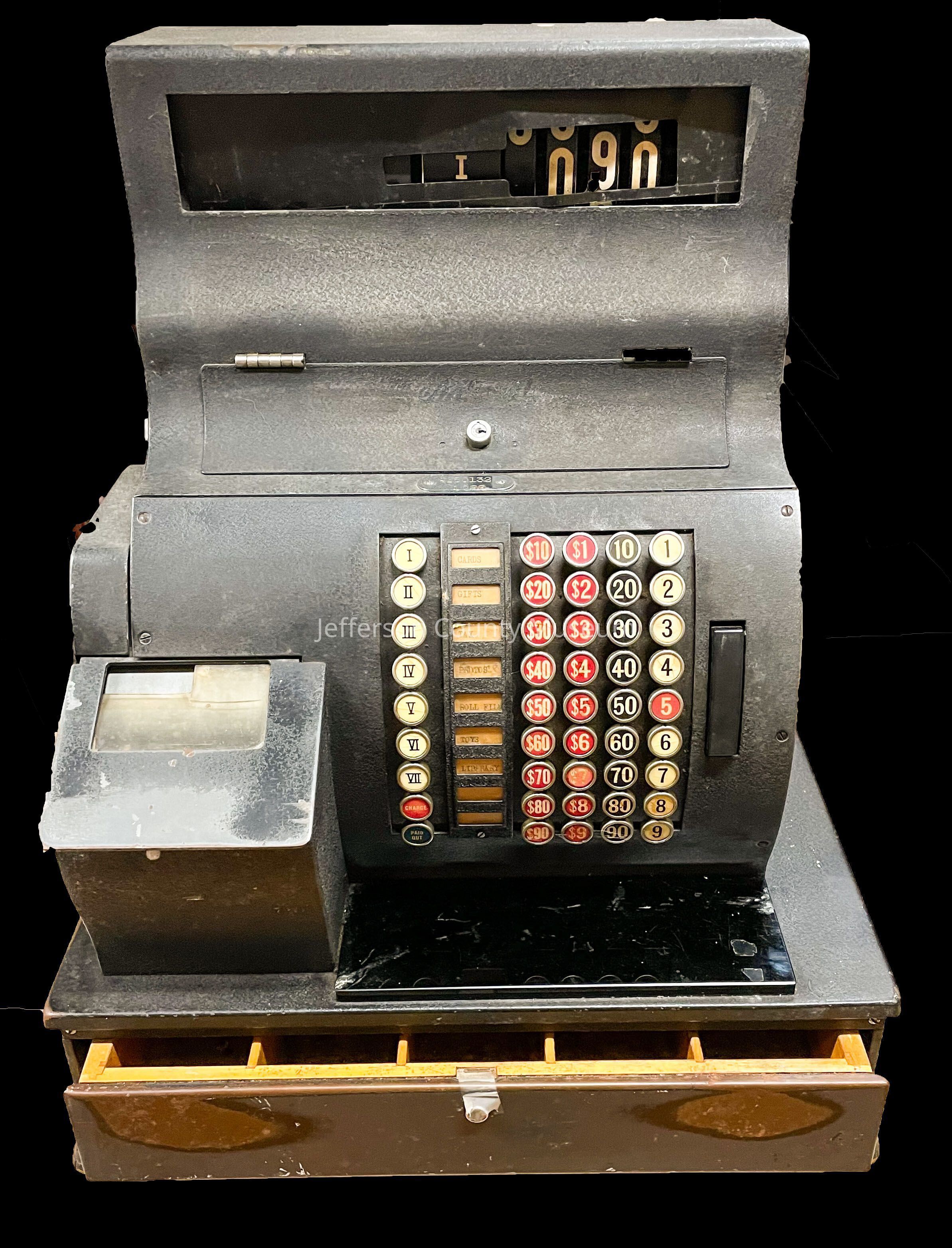 National Cash Register Model No. 1090, serial number 4250132. Metal base, key is missing. Four rows of numerical key one row of keys with Roman numerals. Each row has nine keys up and down. Dollar keys are red; keys for 10-90 cents are white; 1-4 cents and 6-9 cents are white, 5 cent key is red. Used in business (Paul F. Propps, Contractor and Builder), operated by Paul Frederick Propps, Jr. (1928-2012) and his father. Business operated 1950s to 1980s and was located on S. George Street between the post office and the building at the corner of S. George and W. Congress StreetsAcquisition