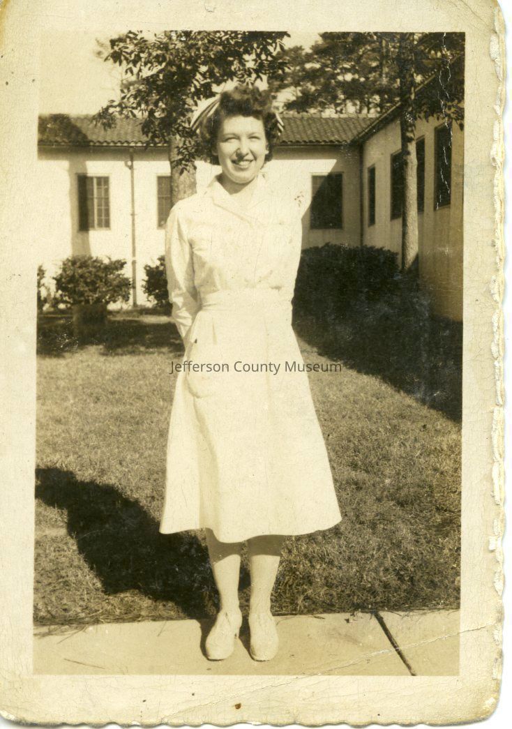 sepia-tone photo of Lucy Katherine Rosenberger in nurse's uniform and cap, undated, probably around 1944