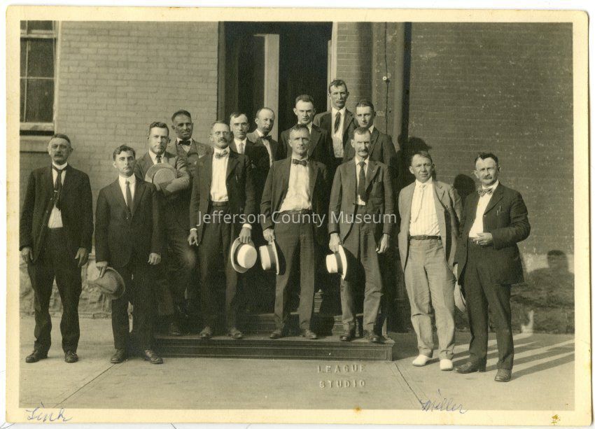 Embossed with "League Studio" at bottom middle of photo. Handwritten on the back is "J. E. Wilburn Jury."Acquisition