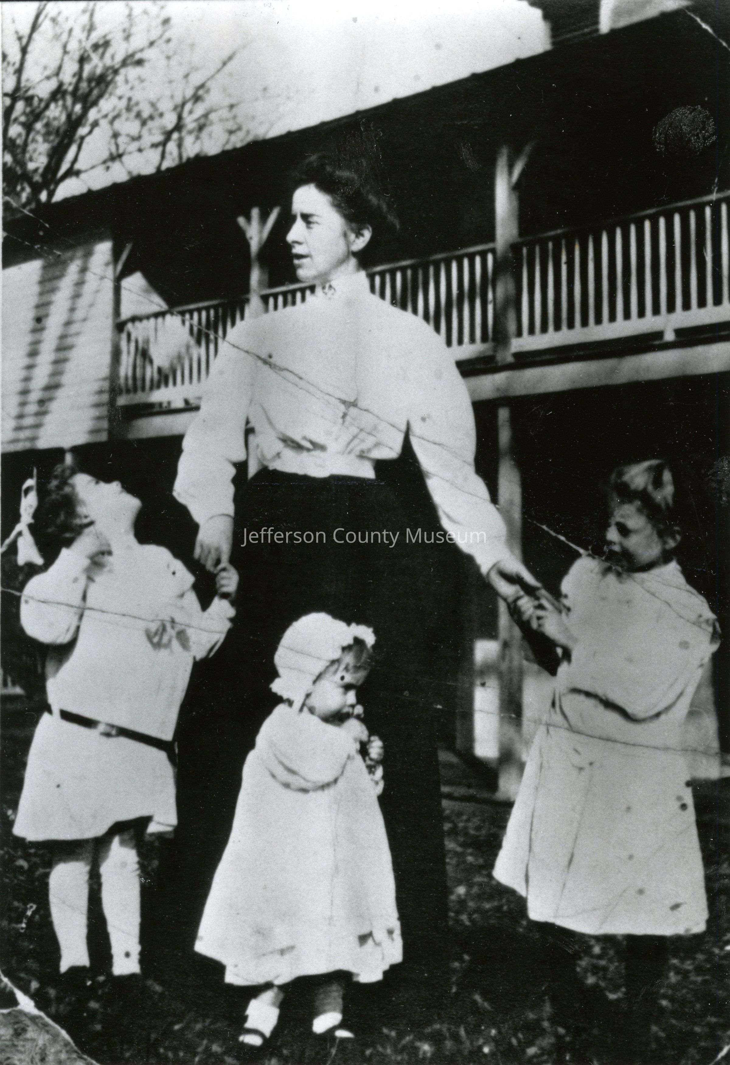 Three children and a woman. One of the children is Virginia Cosy, probably on right.Acquisition