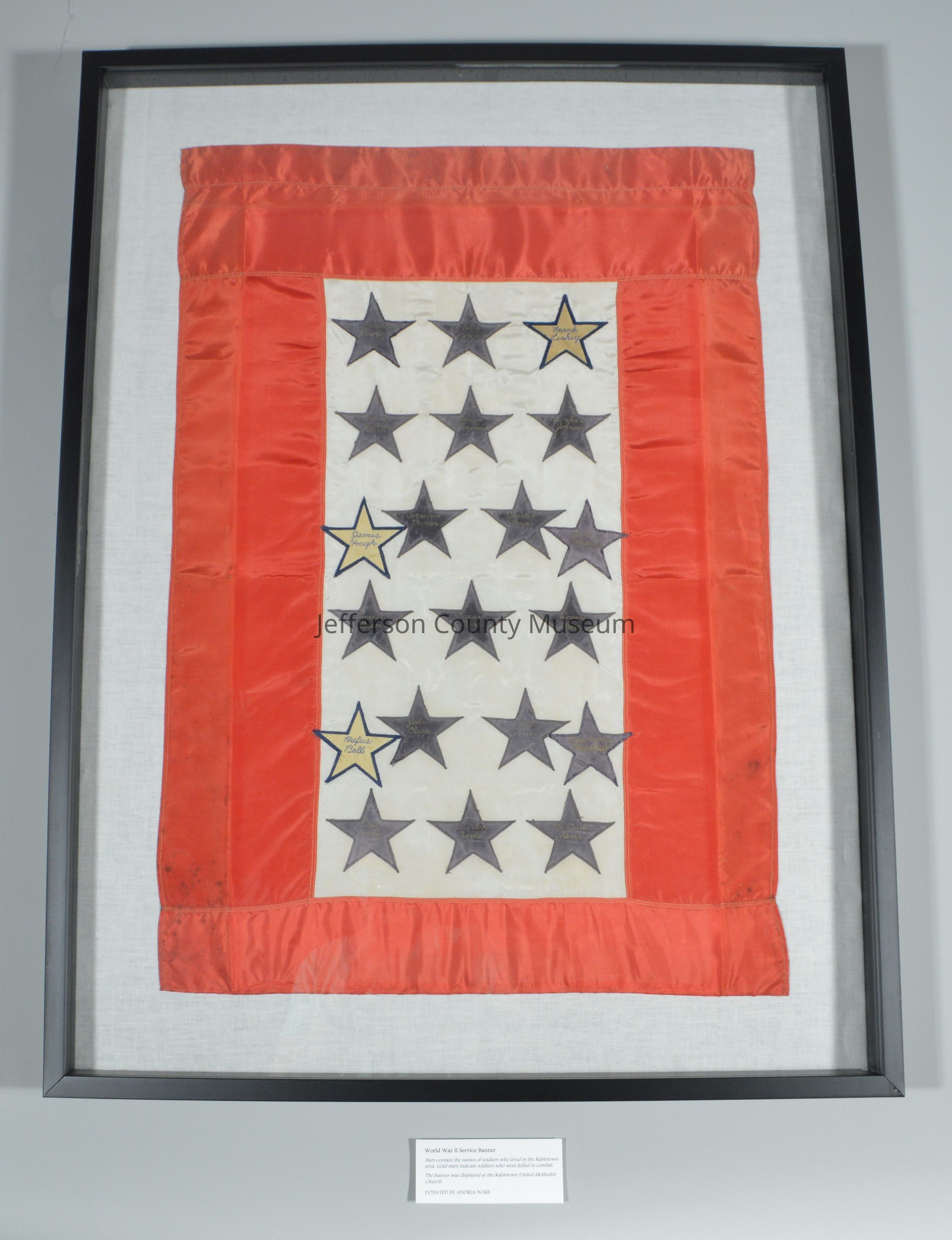 Names on the stars were names of soldiers who lived in the Kabletown area; gold stars indicate soldiers who were killed in combat.Acquisition