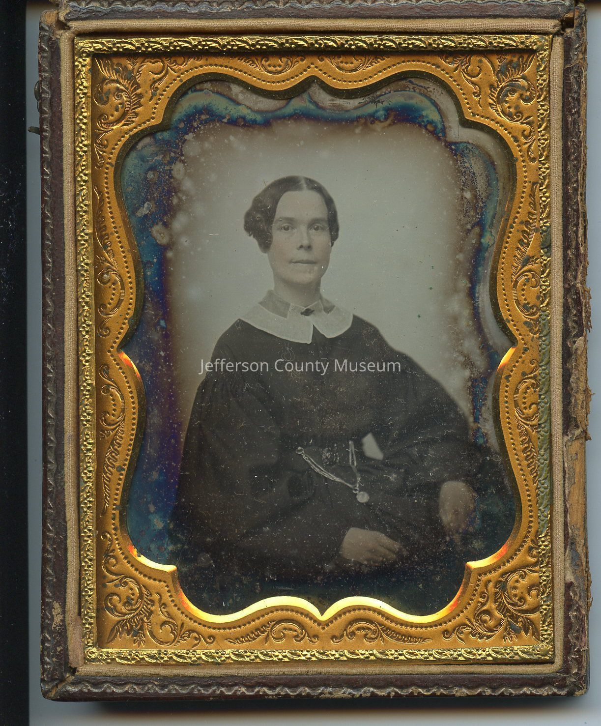 Mariana Eden Jones Paca (Mrs. Edward Tilhgman Paca) mother of Julia Chew Paca Kennedy. In leather, metal and glass frame half of which is missing.Acquisition