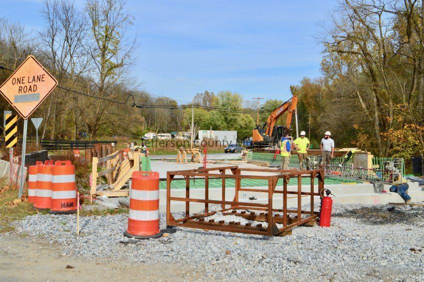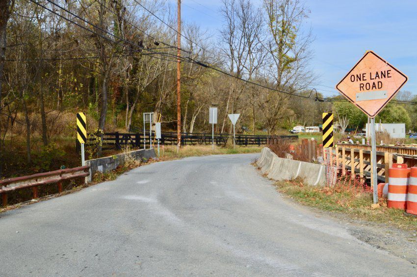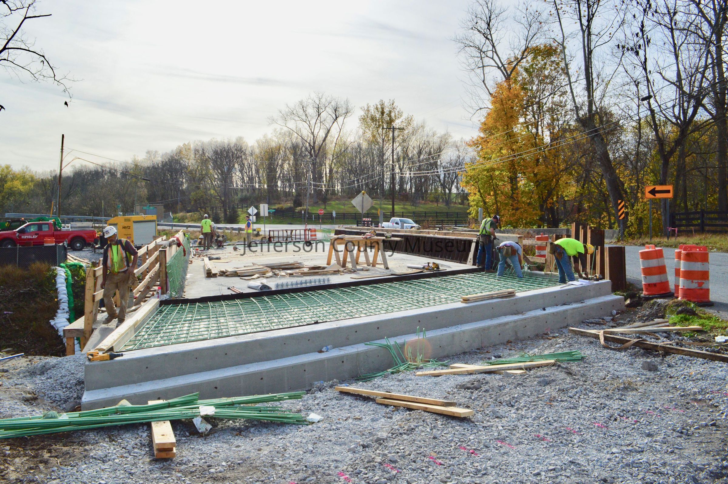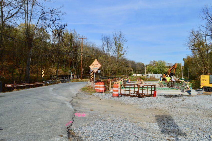 Old bridge and new bridge under construction at Evitt's Run near intersection of Bloomery Road and WV Rt 115