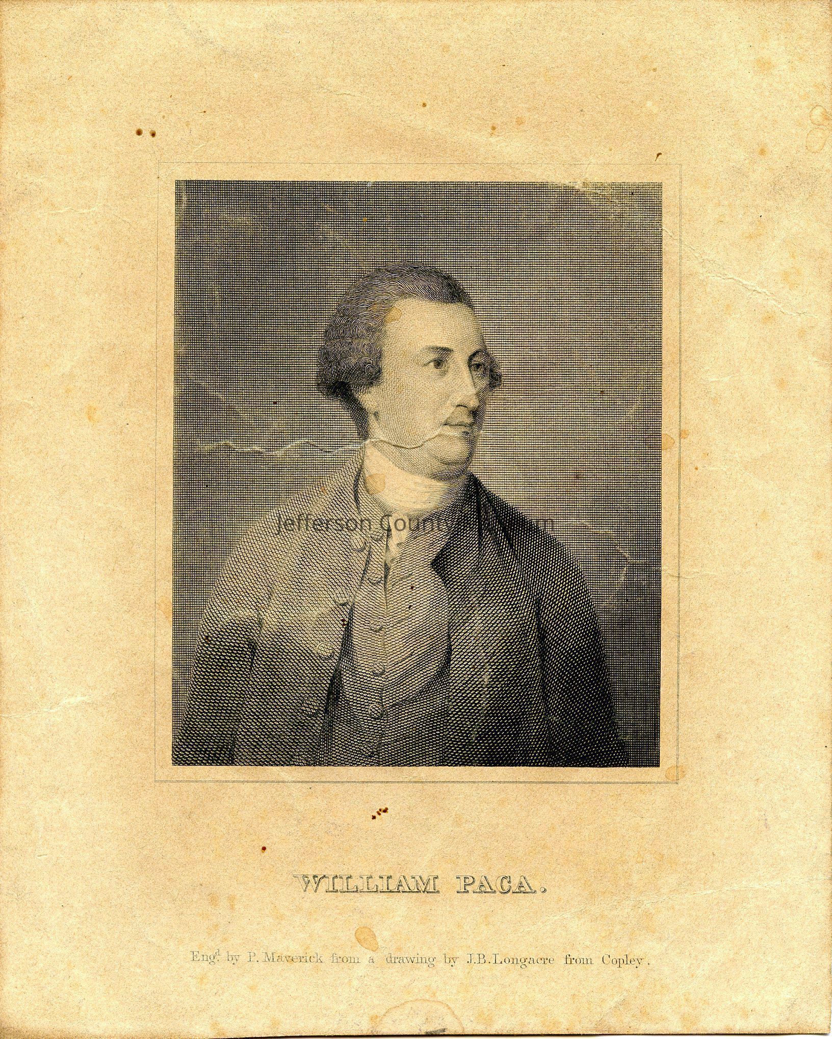 WILLIAM PACA. Below name: Engd. by P. Maverick from a drawing by J.B. Longacre from Copley. William Paca was a signatory of the Declaration of Independence and a three-term governor of Maryland.
