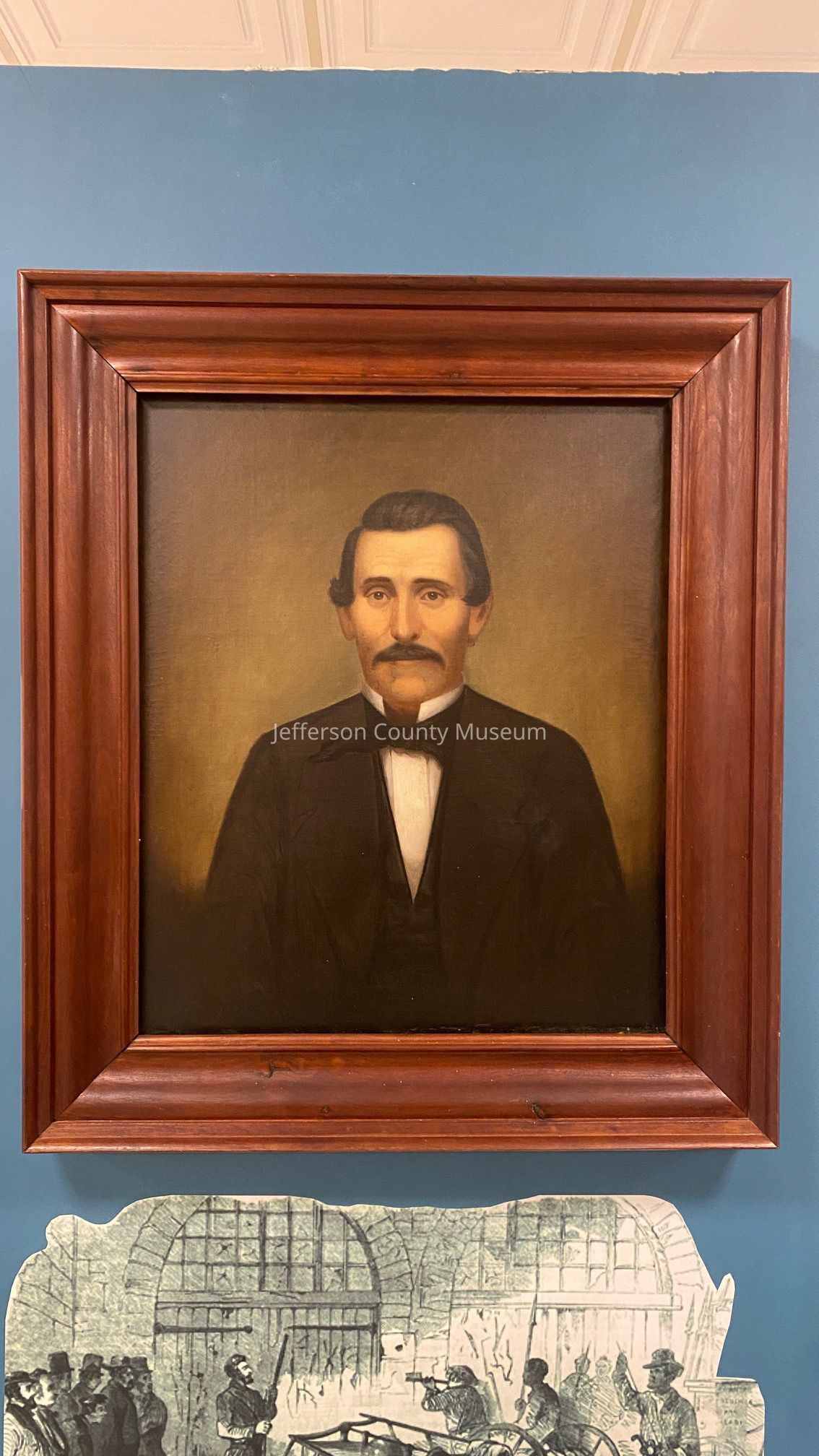 Oil on canvas. Portrait of Fontaine Beckham in wooden frame. Subject is wearing a suit and looking straight forward. Portrait was likely begun before his death in John Brown's raid in 1859.Acquisition