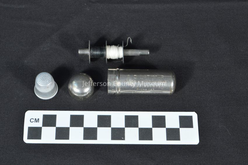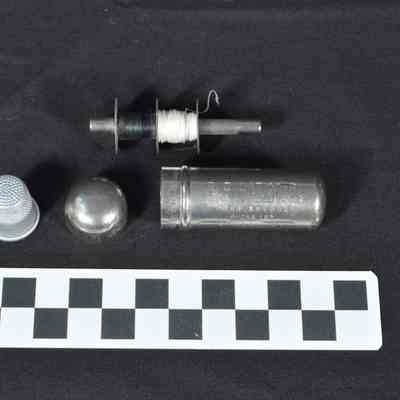 (c) Silver thimble (thimble may not have originally been in the bobbin holder).