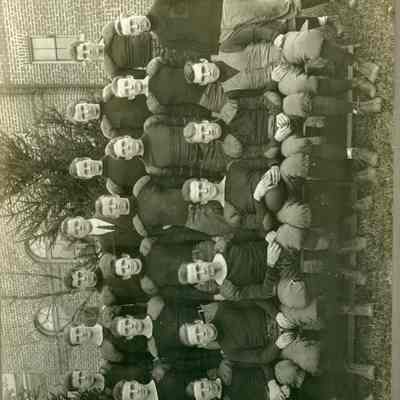 (7) Sepia-tone photo of Woodberry Forest School's track team, individuals are identified below photo (Perry is seated, second from left), photo taken by a studio in Charlottesville, VA; photo is undated, but c1906-1908 (other # 4)
