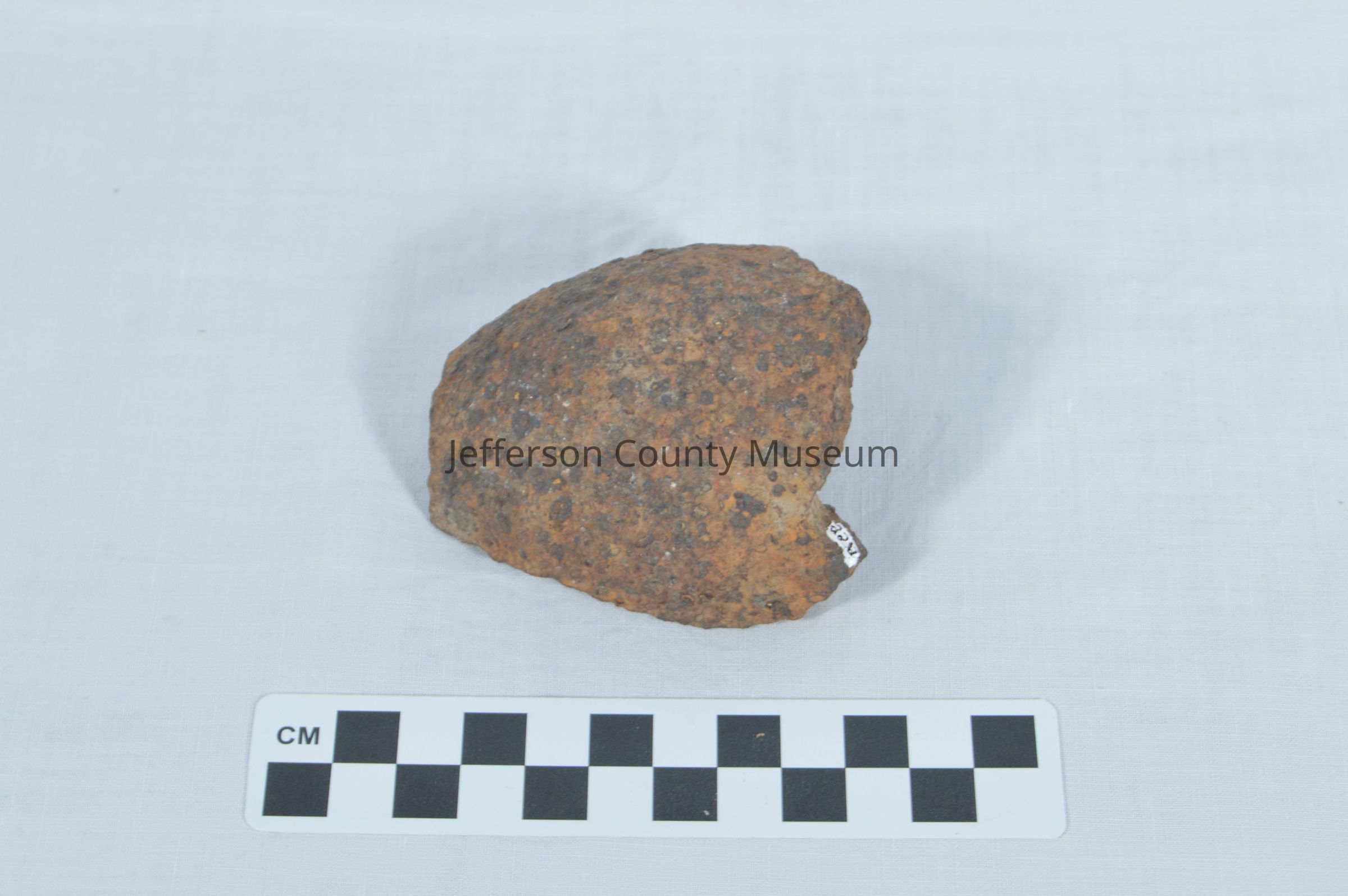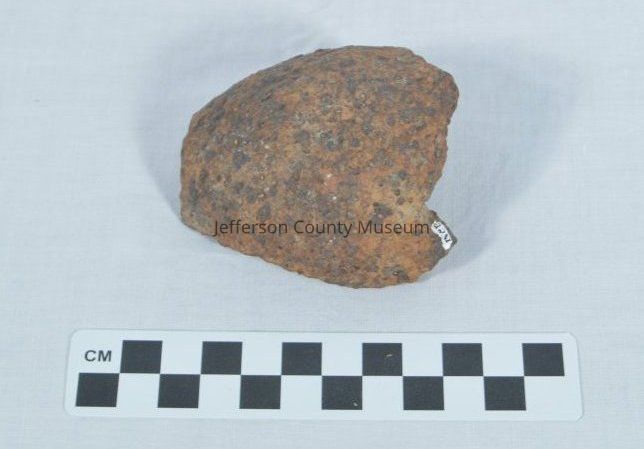 Piece of shrapnel shell from the Civil War era. Impression in the shell for fuse to fit seen at top.