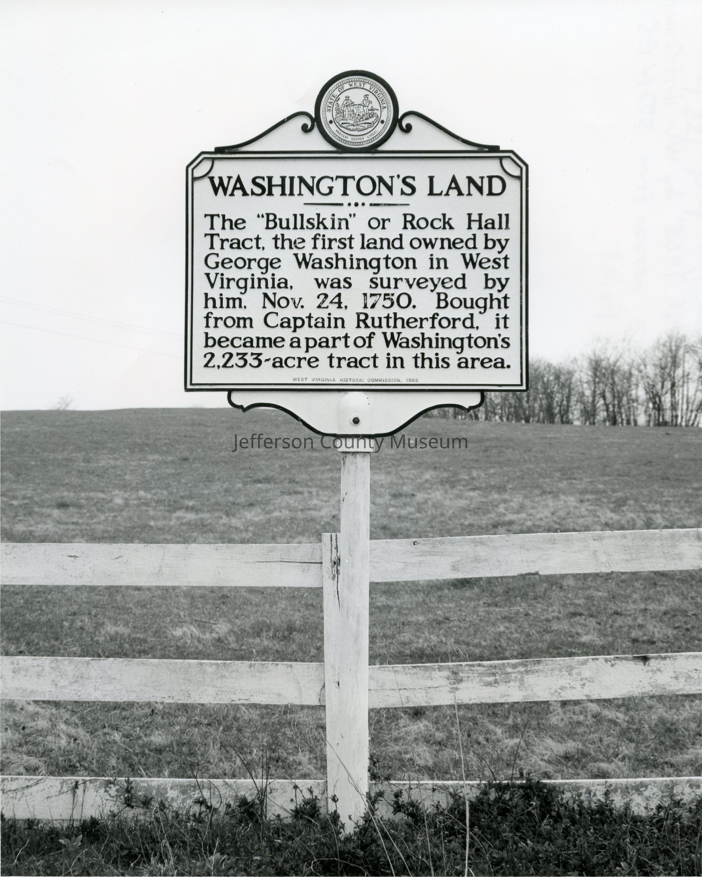 The Bullskin or Rock Hall Tract, the first land owned by George Washington in West Virginia, was surveyed by him, Nov. 24, 1750. Bought from Captain Rutherford, it became a part of Washington's 2,233-acre tract in this area.Acquisition