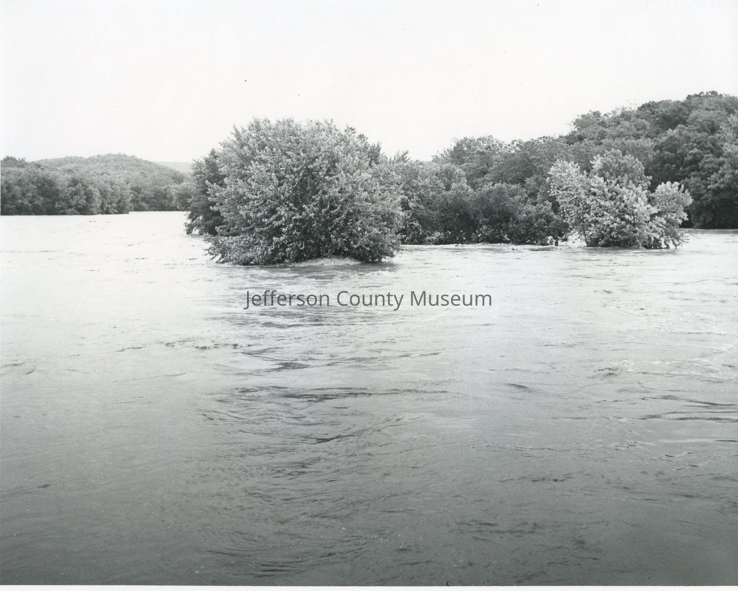 Island in the Shenandoah River below the Bloomery Bridge deluged by floodwater from Hurricane Agnes, June 1972.