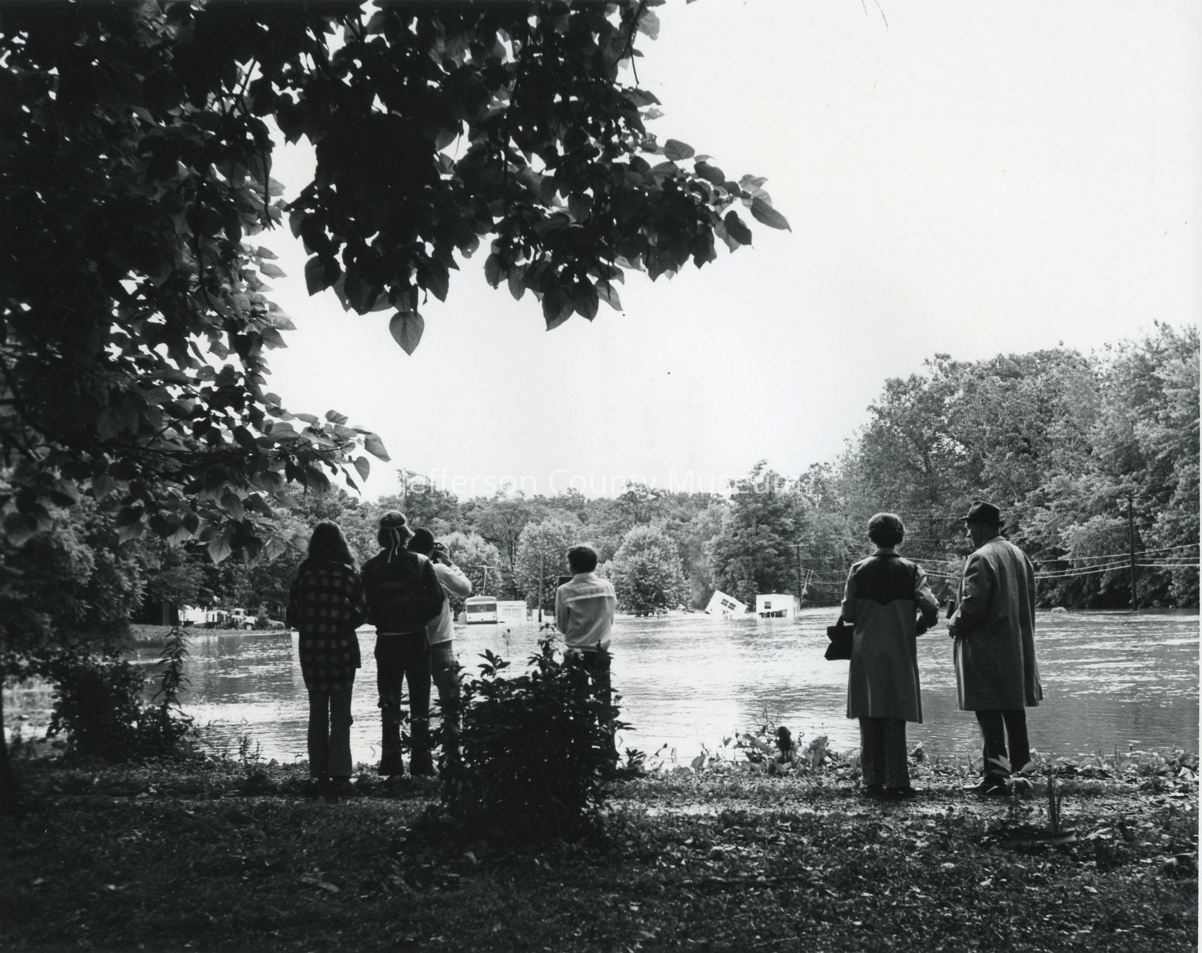Onlookers viewing damage to mobile homes along present day John Rissler Road adjacent to the Shenandoah River. June 1972 floodwaters peaked at Millville, WV, at 21.9 feet. Flood stage is 10 feet.