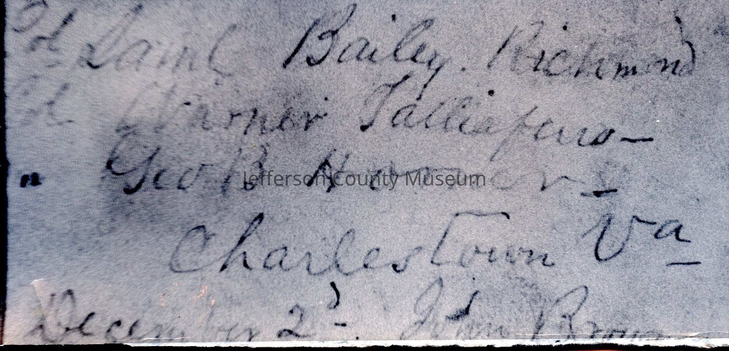 Colonel Samuel Bailey Richmond, Colonel William Booth Taliaferro and Colonel George Baylor Horner. These officers were on the faculty of VMI and were in Charles Town for the hanging of John Brown. Accompanied by a photographic copy of signatures of the three officers. Below the signatures is "Charlestown Va December 2d John Brown"Acquisition