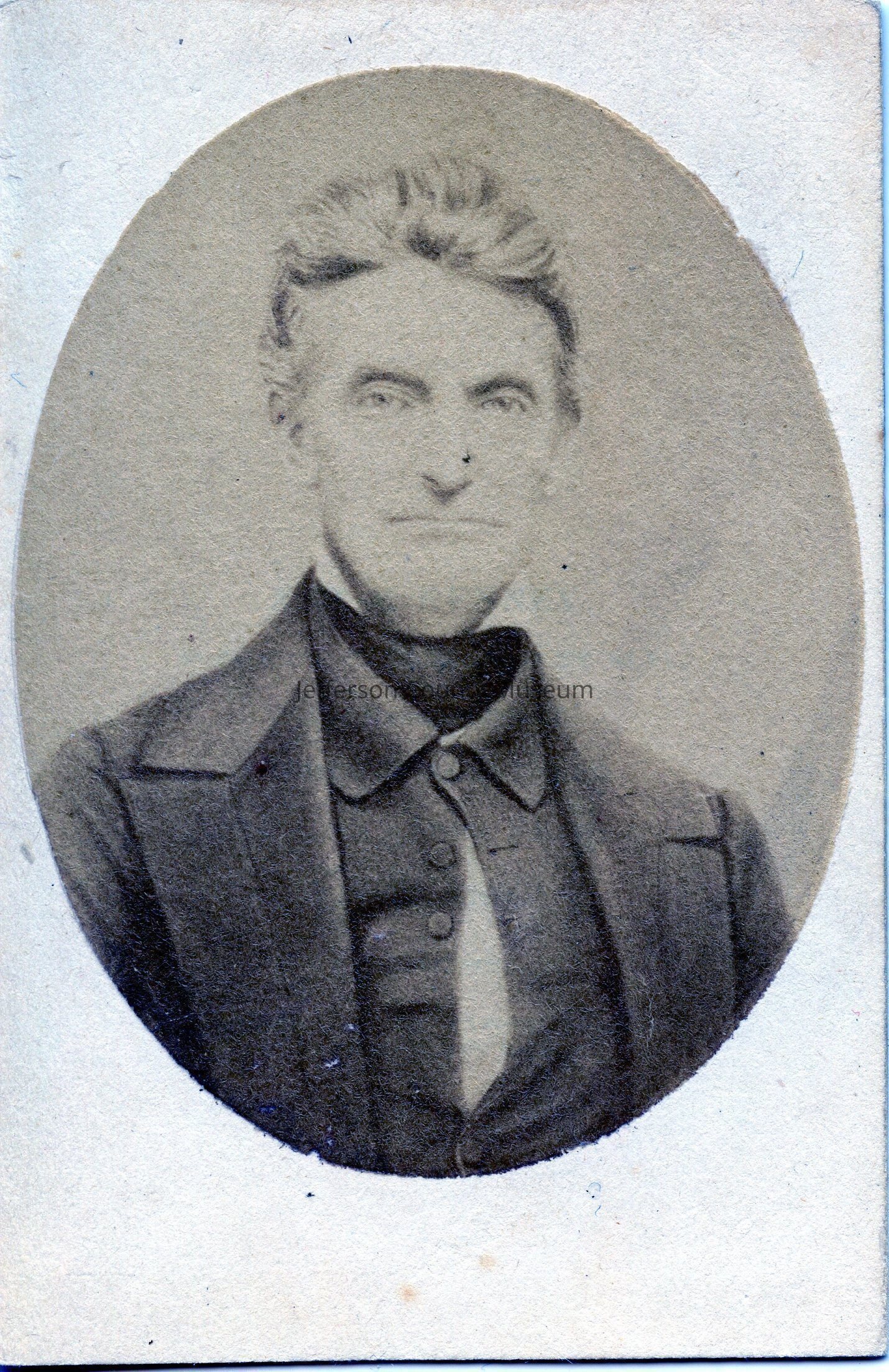 John Brown, full face, clean shaven wearing coat, vest with collar buttoned at throat with one button, black stock. Hair worn short.Acquisition
