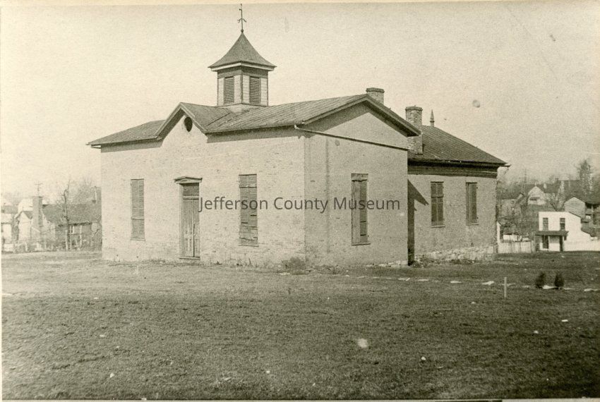 Charles Town Academy, a private school for white students, built in 1797 and razed in 1912. Photo shows brick building with cupola. At bottom "OLD CHARLES TOWN ACADEMY 1885".Acquisition