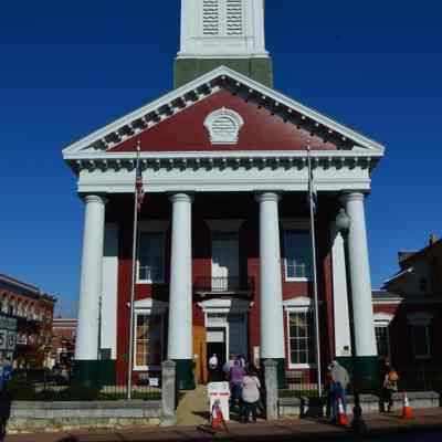 IMG3787003: Early voters in line at Jefferson County Courthouse. Line extends along East Washington Street.