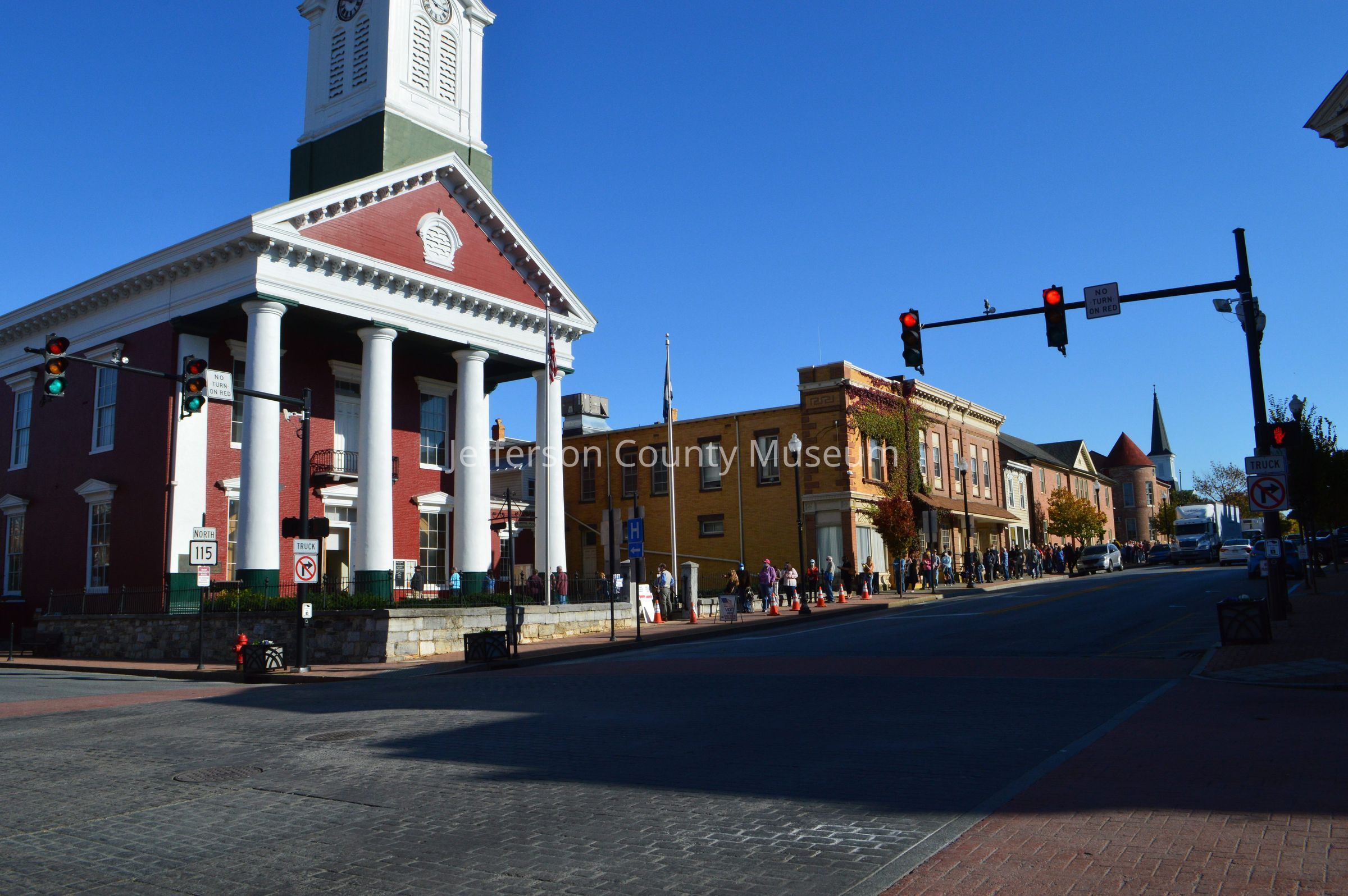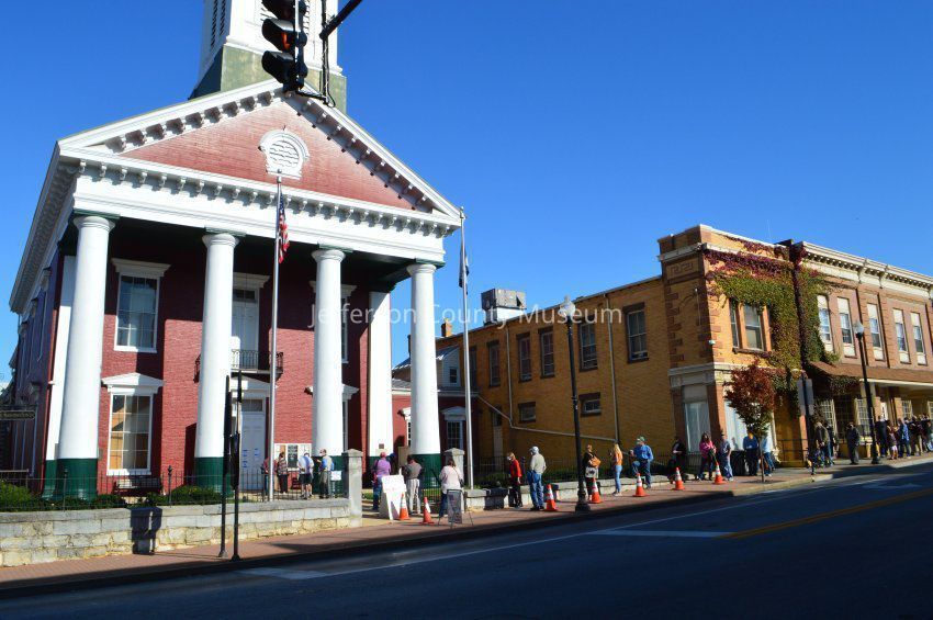 IMG3787004: Early voters in line at Jefferson County Courthouse. Line extends along East Washington Street.