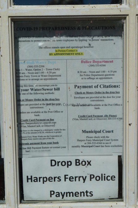 Harpers Ferry Police Station with COVID-19 pandemic signEntry/Object ID