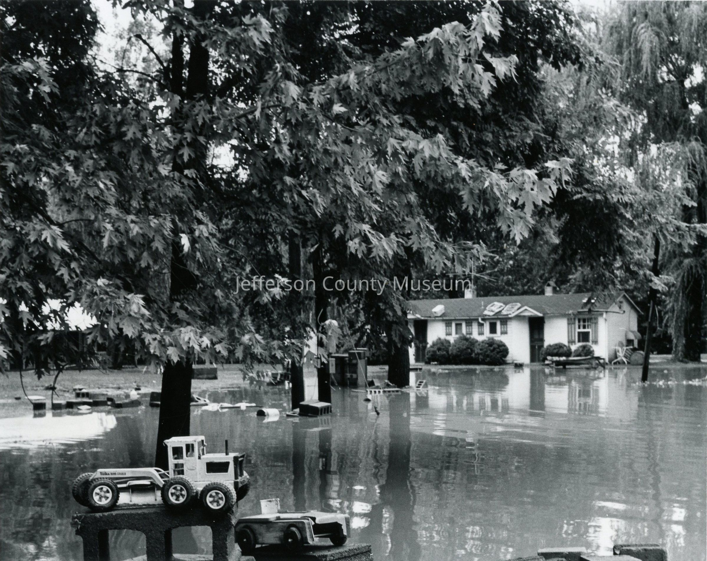 Closeup of the impact to houses along the Shenandoah River at the Bloomery during the flood caused by Hurricane Agnes in June, 1972.
