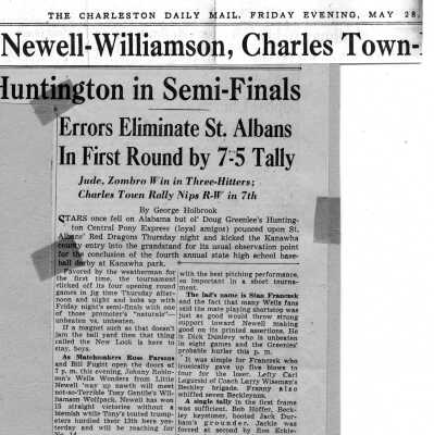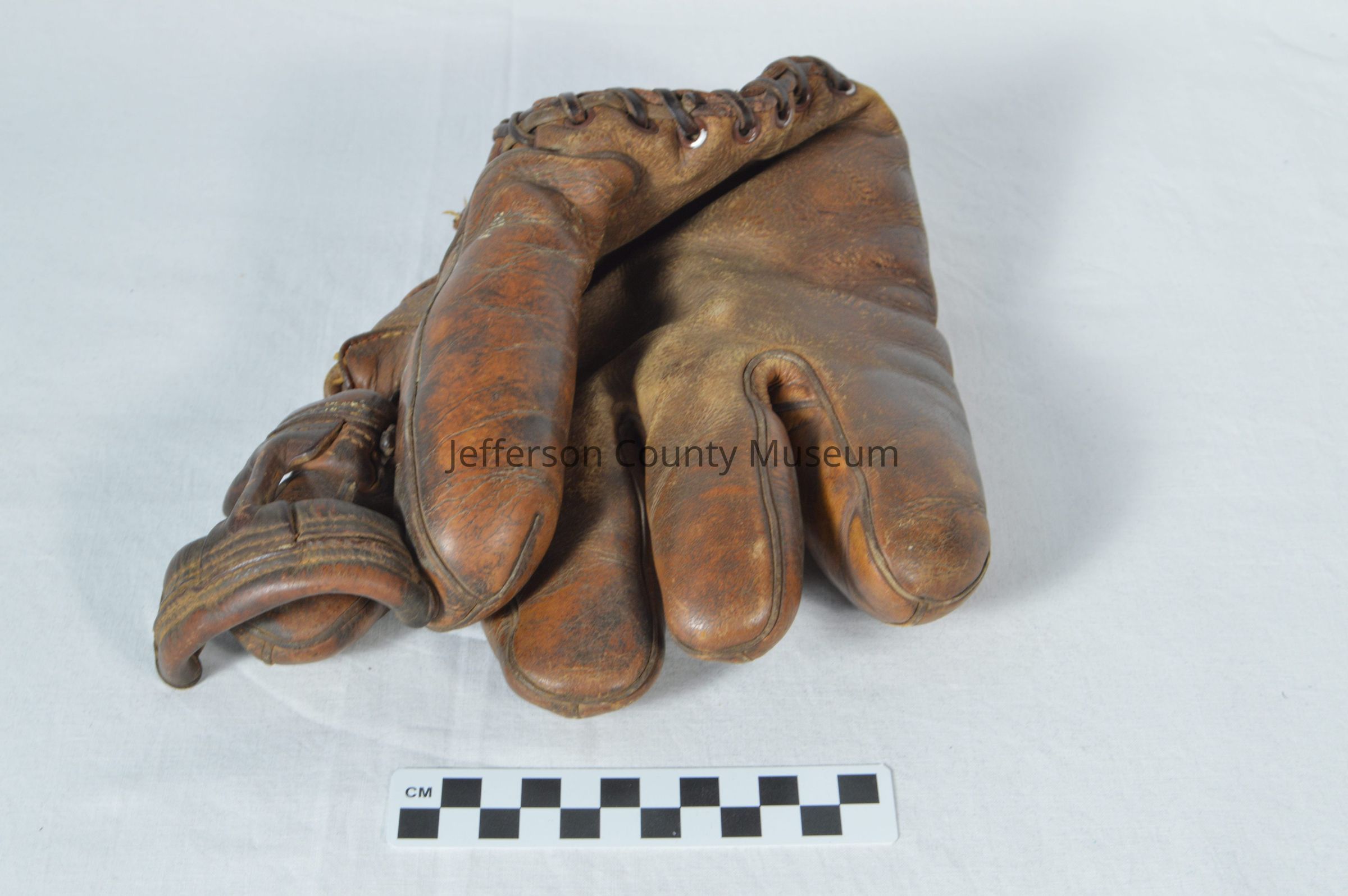 Brown, leather baseball glove. Used by Archie B. Smith while on the Charles Town High School baseball team between 1946 and 1950. Smith was a 12-letter player in baseball, football, and basketball at Charles Town High School from 1946 to 1950.Acquisition