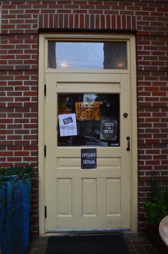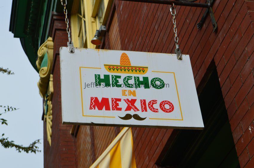 IMG3803002: Front door of Hecho en Mexico with limited-capacity sign in window