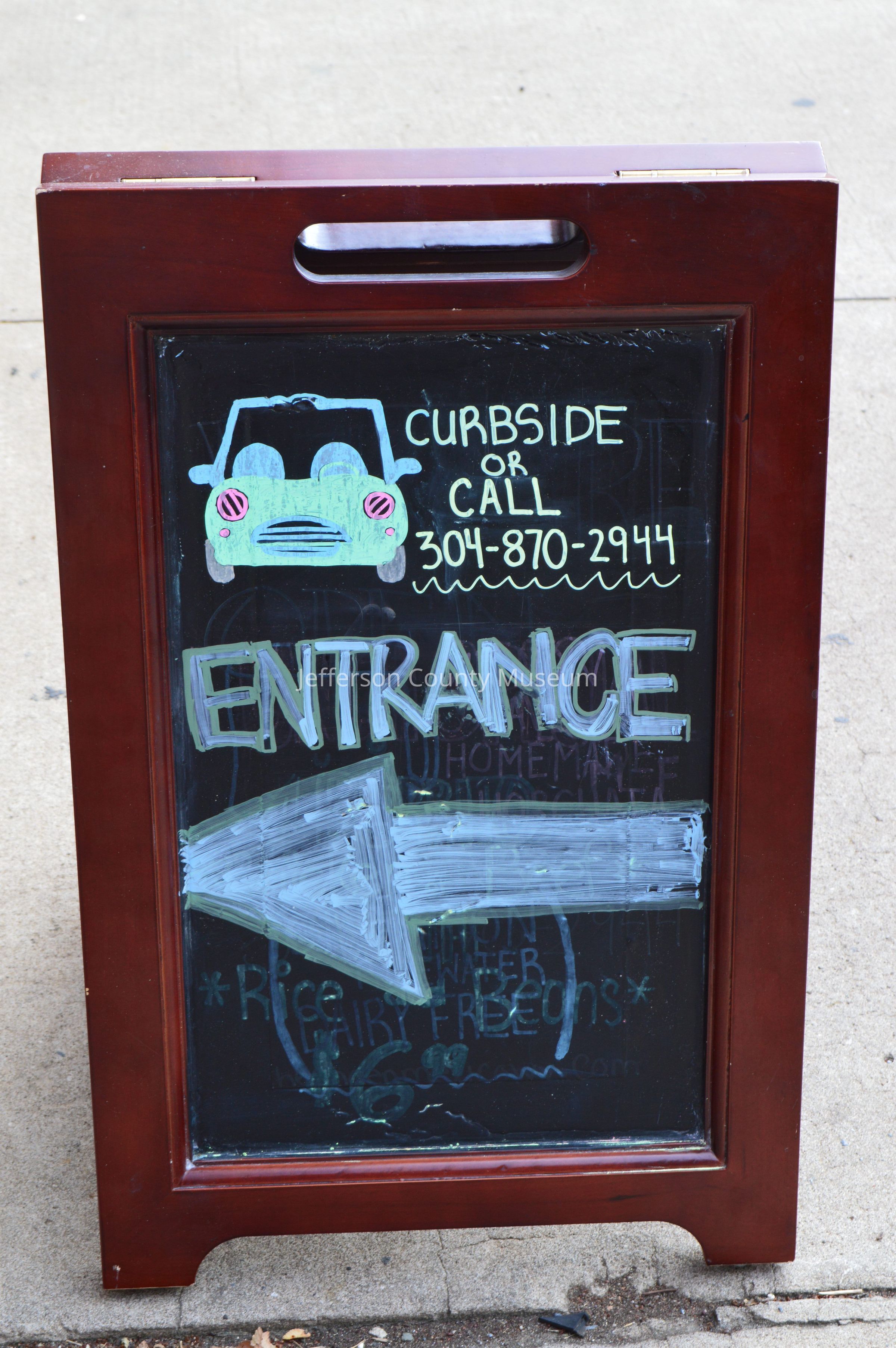 IMG3803003: Chalkboard sidewalk sign about curbside pickup for Hecho en Mexico