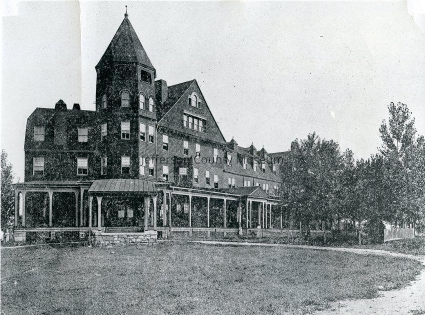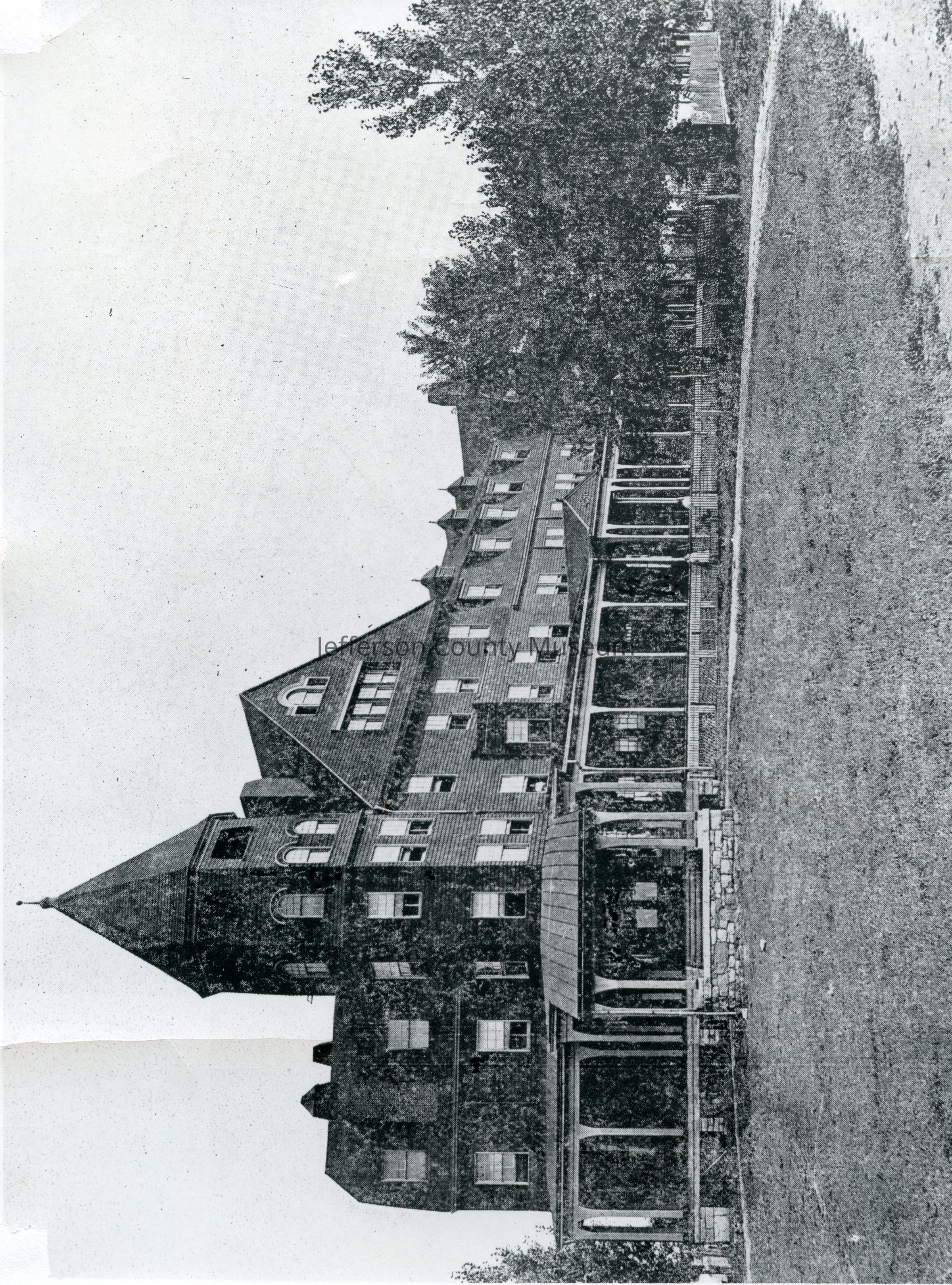 Large frame structure with 4 story turret on one end. At bottom POWHATAN COLLEGE FOR YOUNG WOMEN. Stamped on back EDWIN A. FITZPATRICK 627 JEFFERSON AVE. CHARLES TOWN, W. VA. 25414.Acquisition