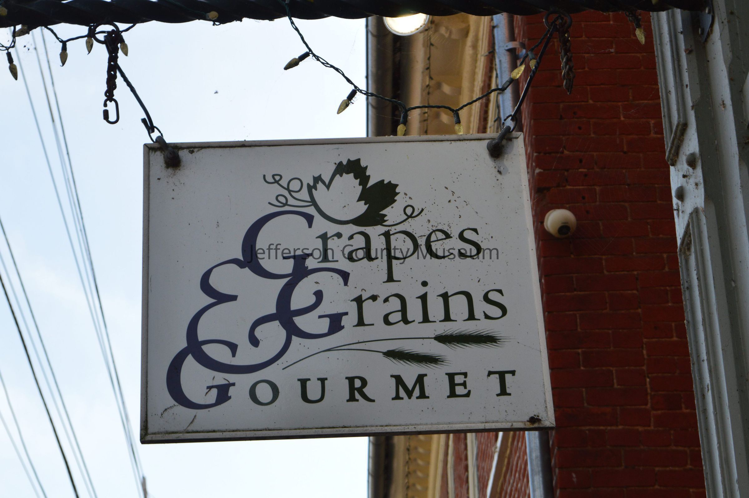 IMG3807001: Grapes & Grains Gourmet hanging sign