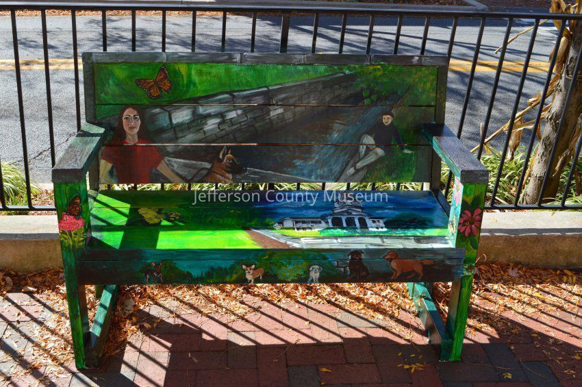Eight painted benches in Shepherdstown in 2020 and 2021. Shepherdstown Shares, an organization that responds to crises in the Shepherdstown community, developed the "Bench Project" to provide work for local artists and artisans during the pandemic, while also providing the community with functional art work. See Media for article about the project.
