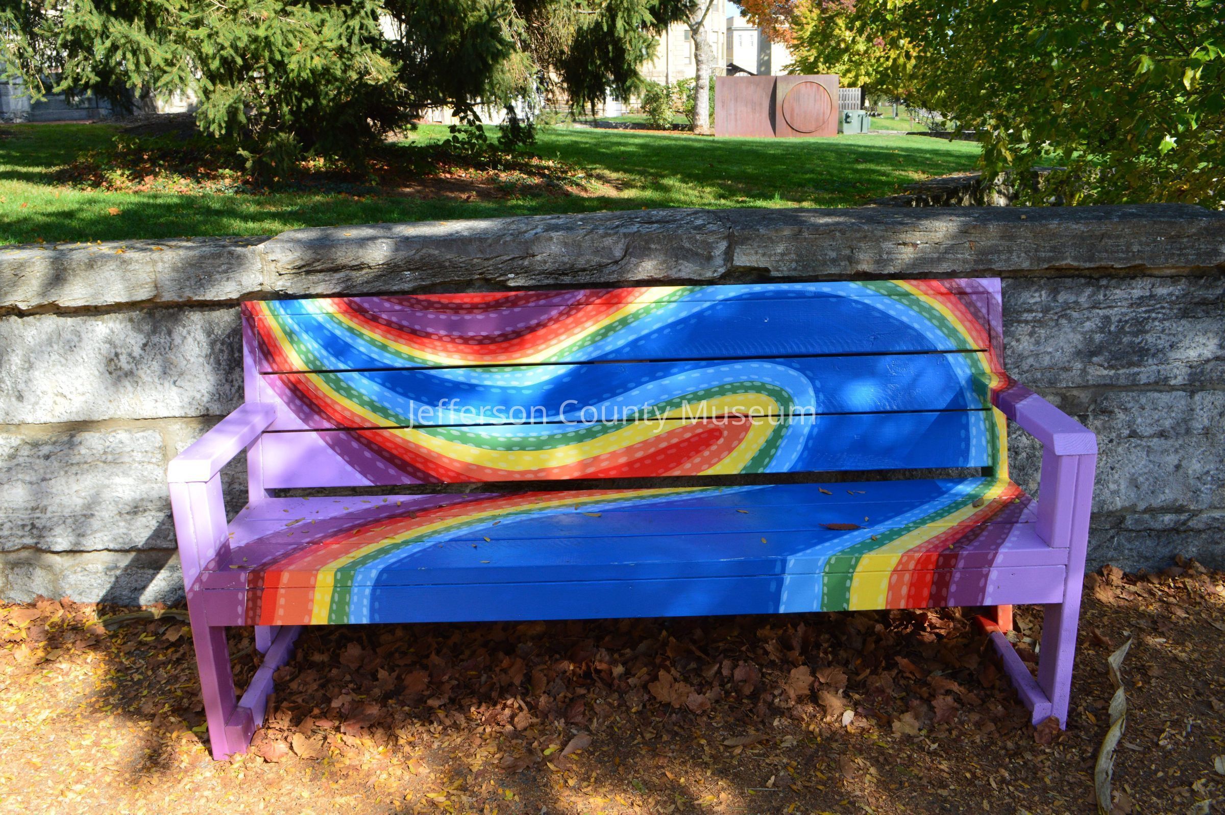 IMG3820005: Bench with painted rainbow.