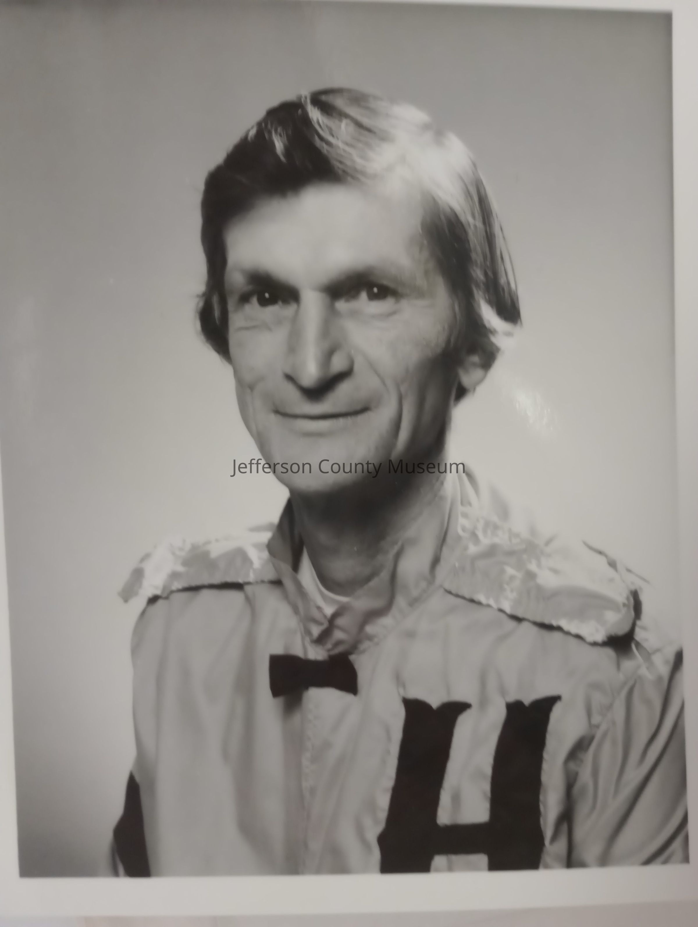Black and white photographic portrait of jockey Stanley Small wearing his silks. Likely taken at the Charles Town RacesPhotograph Details