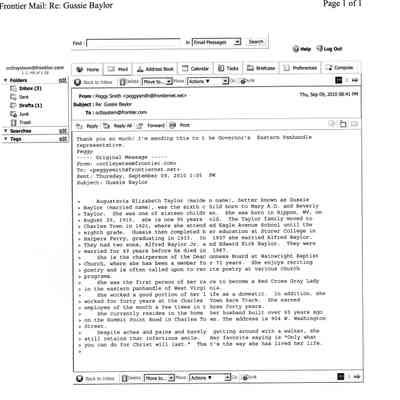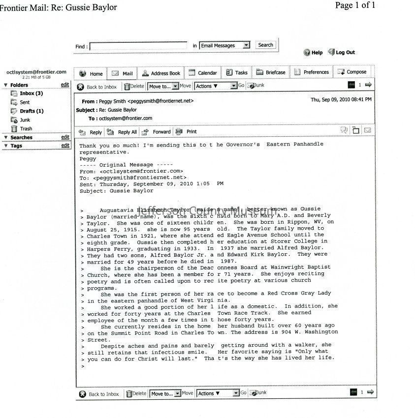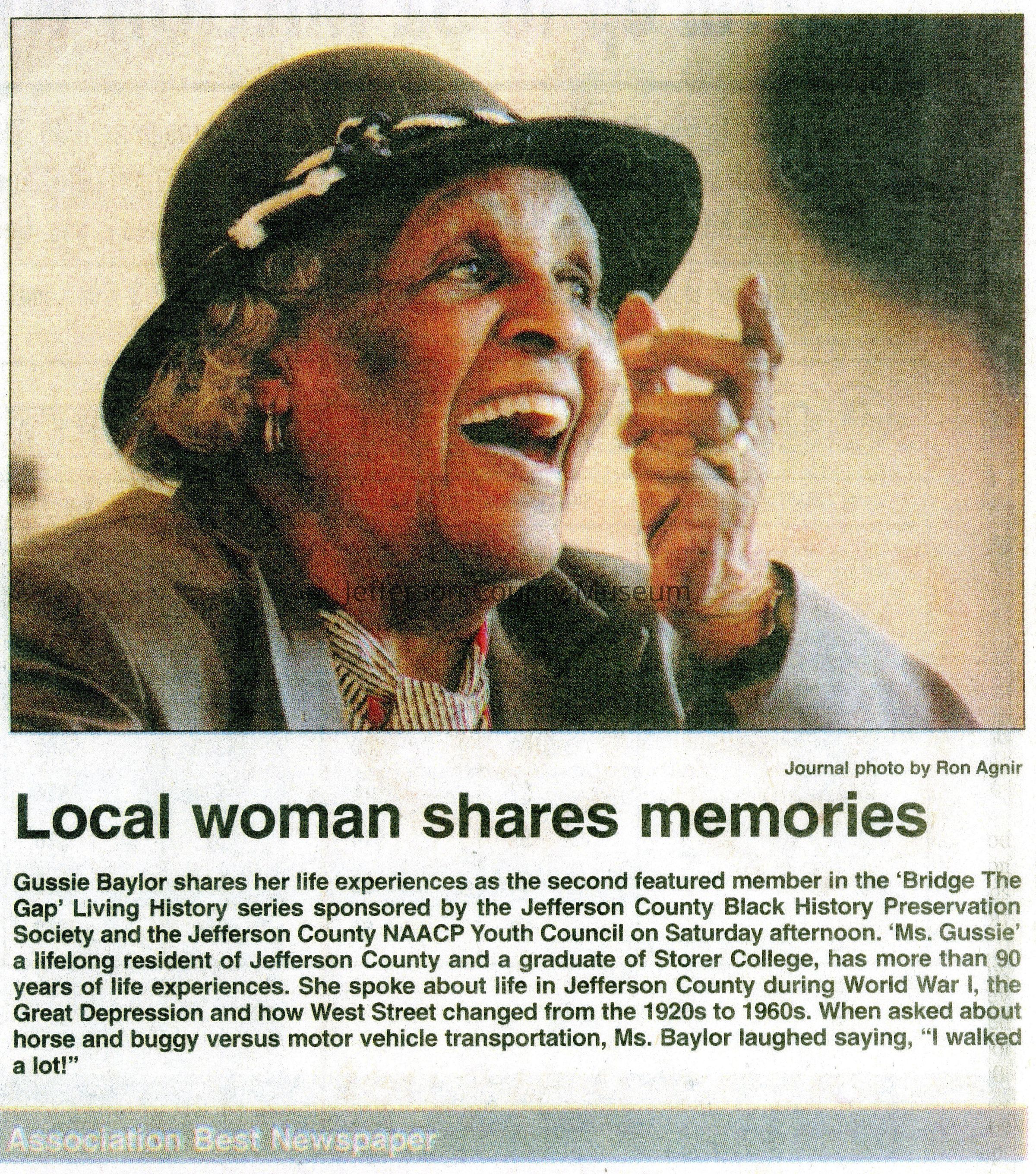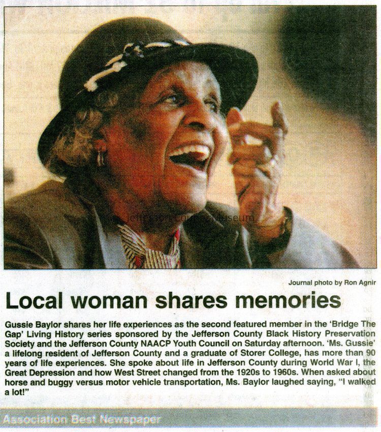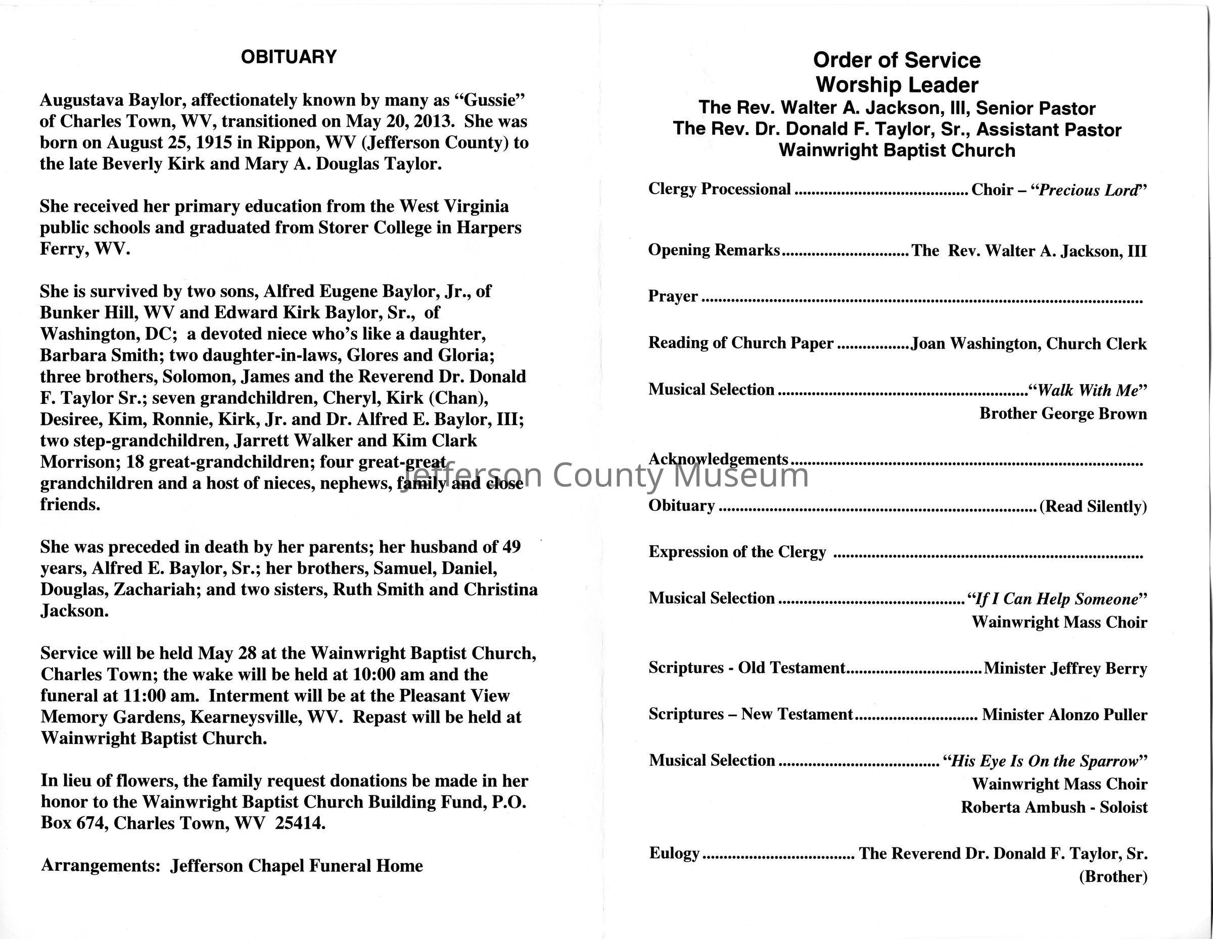 ARC755-4: Obituary of Augustava "Gussie" E. Baylor from the Journal (Martinsburg), May 22, 2013.
