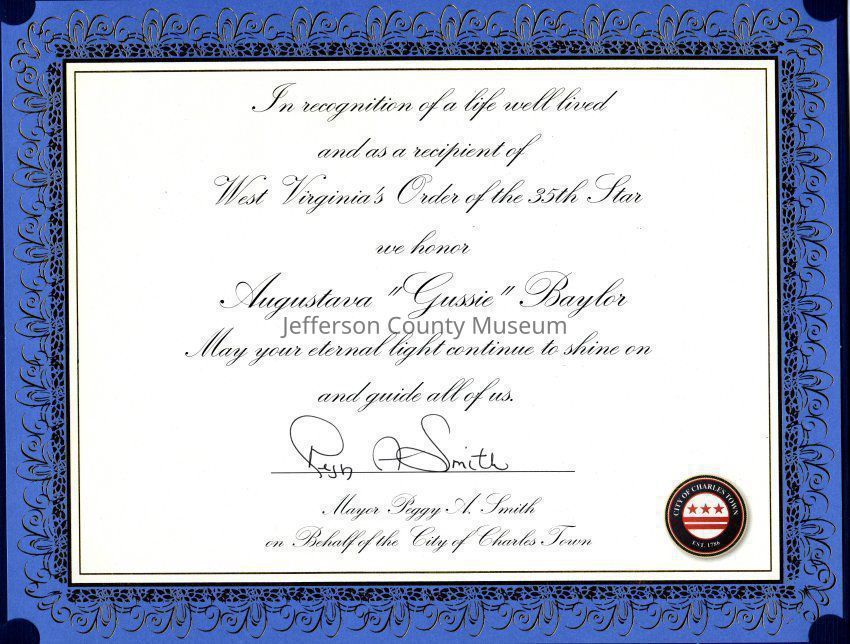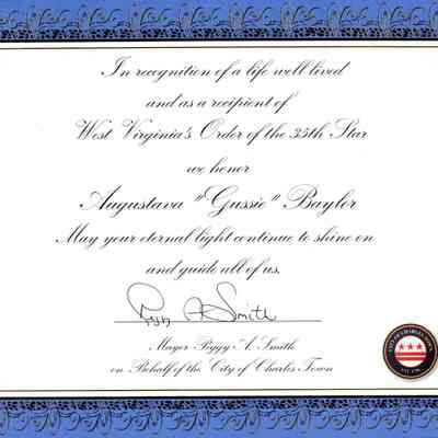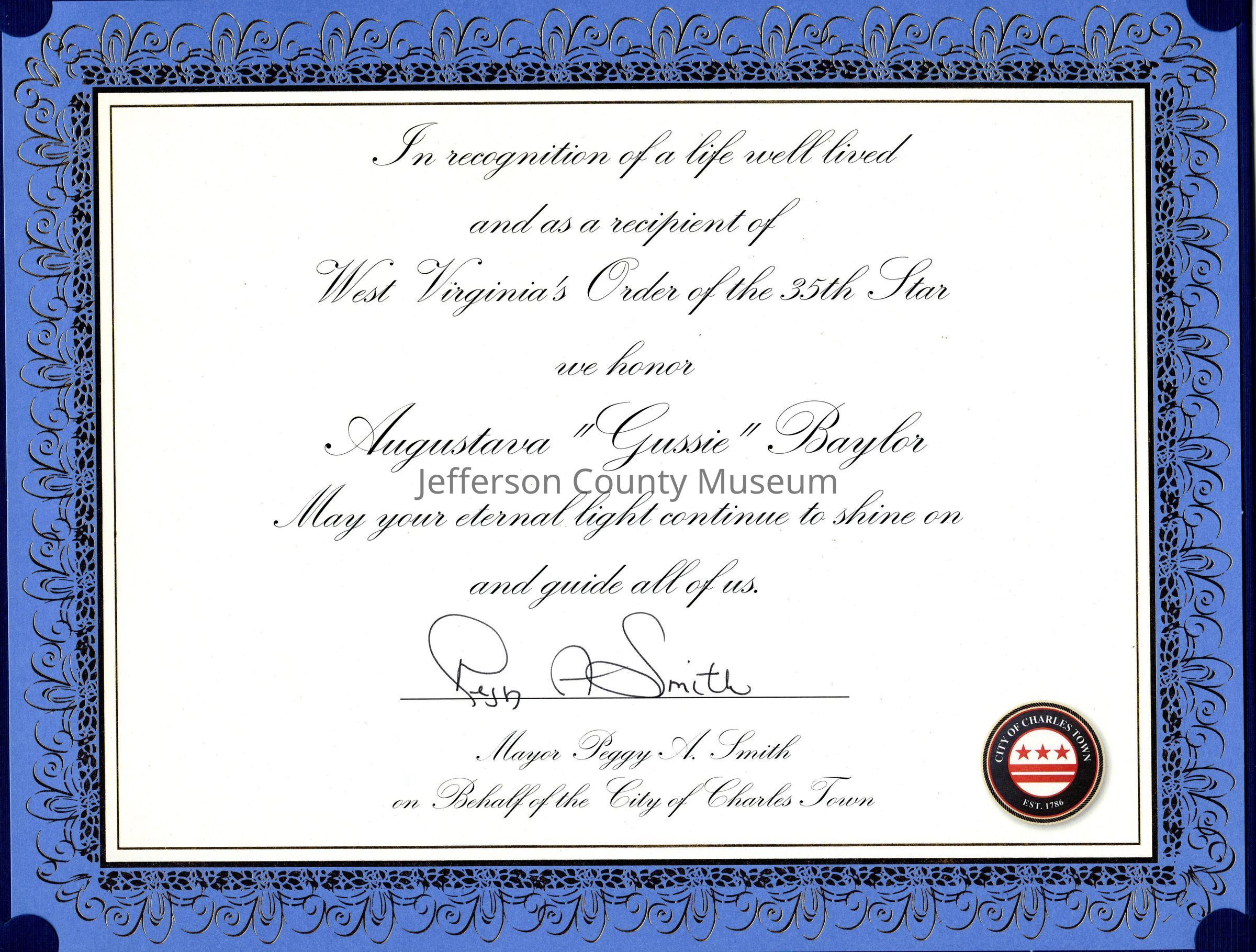ARC755-3: Certificate of Recognition from Mayor of Charles Town (no date).