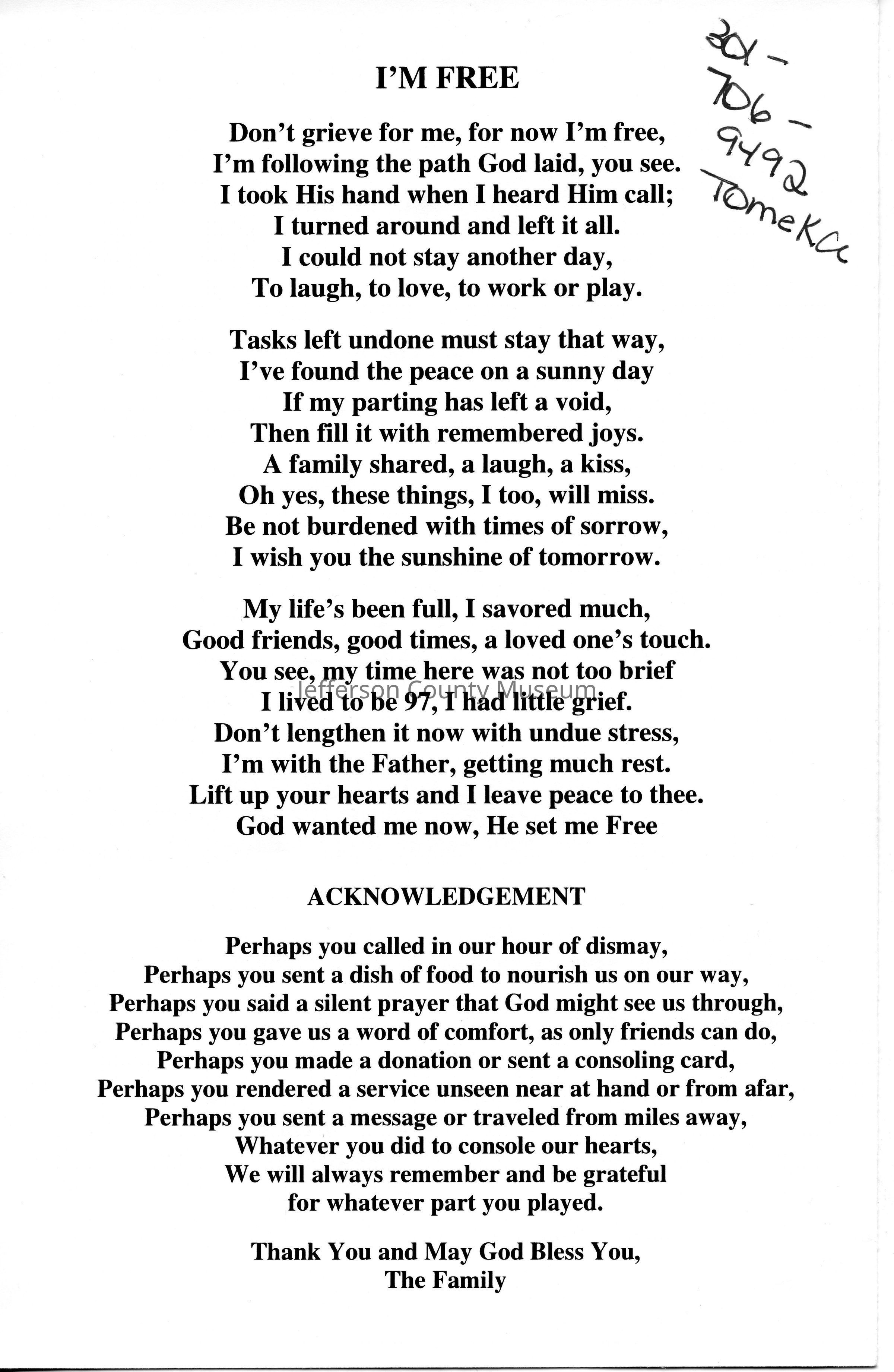 ARC755-5: Funeral Program. Images labeled ARC755-5a, ARC755-5b, ARC755-5c