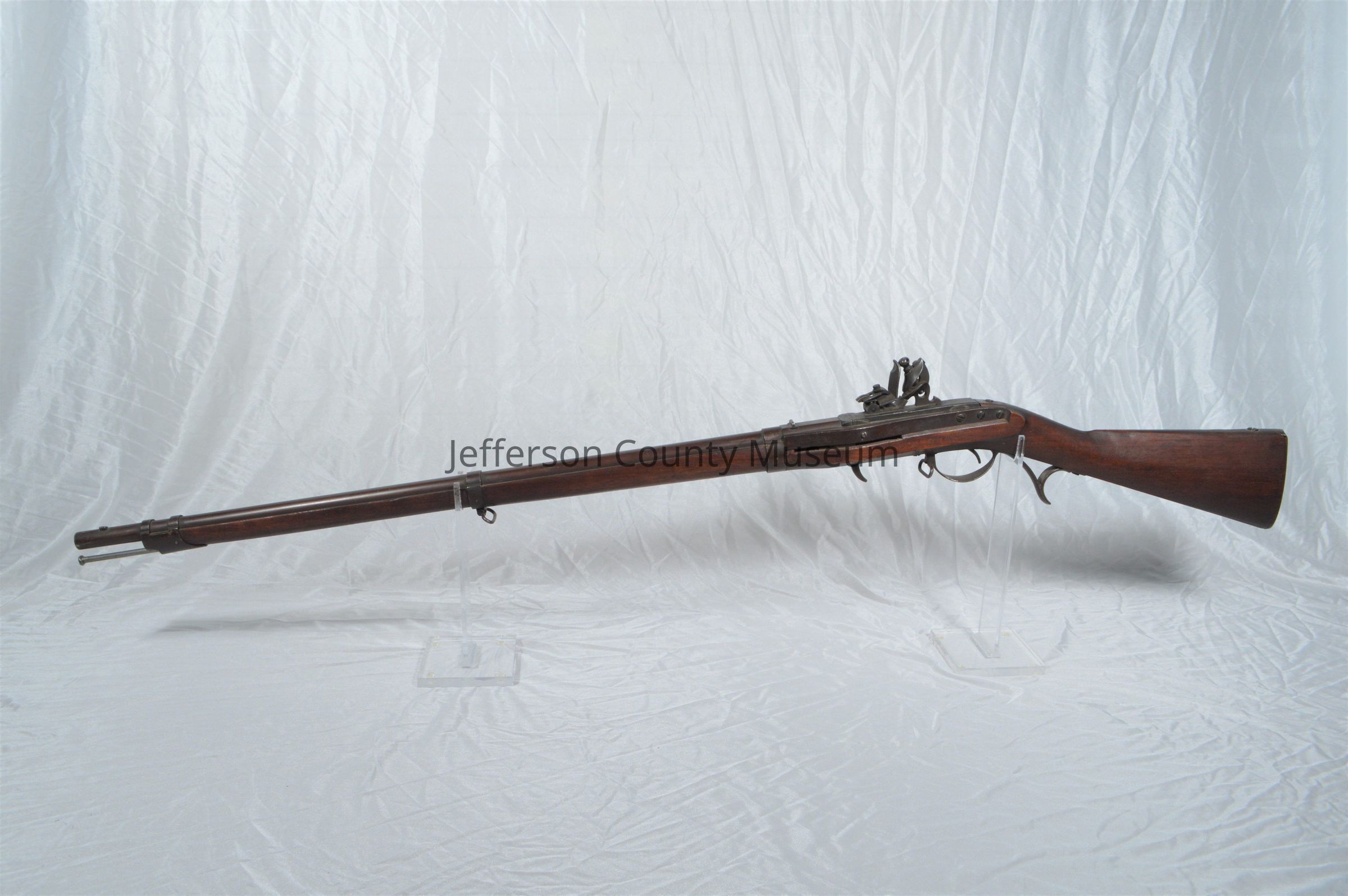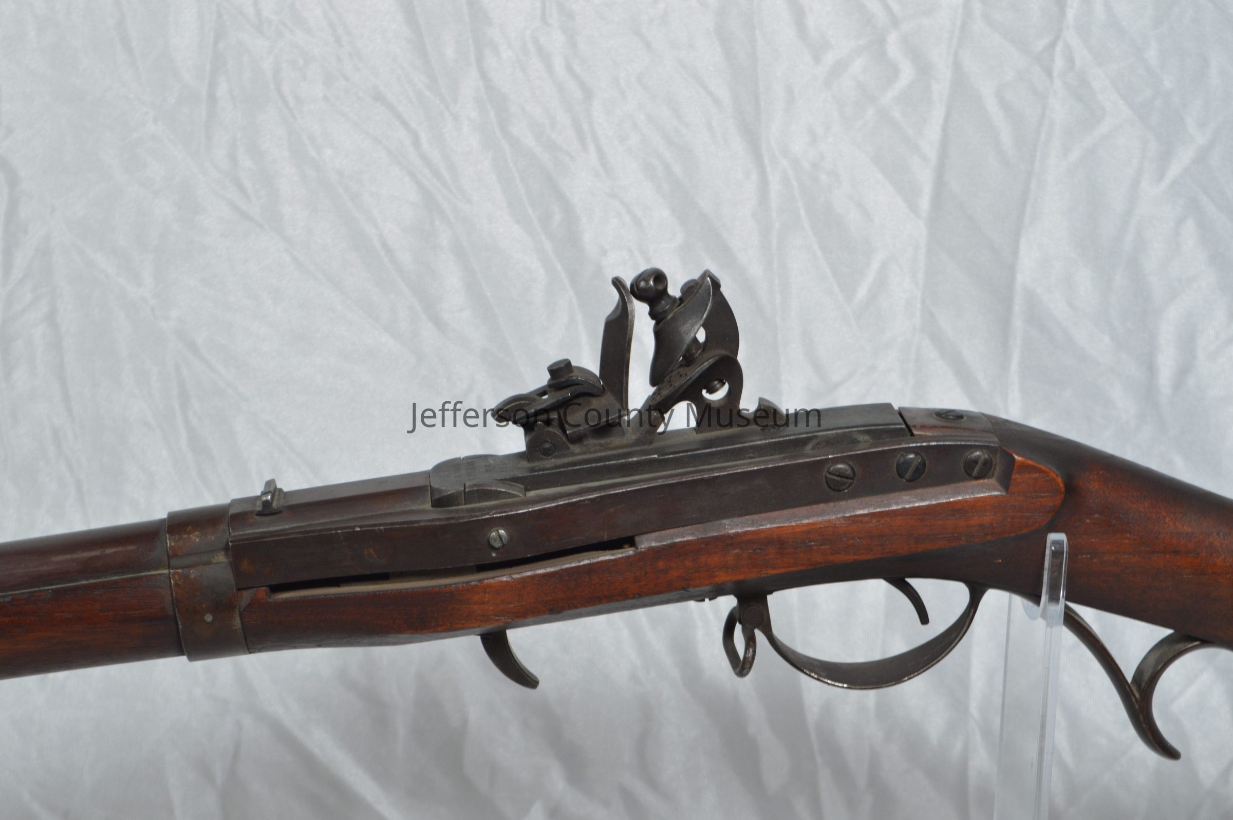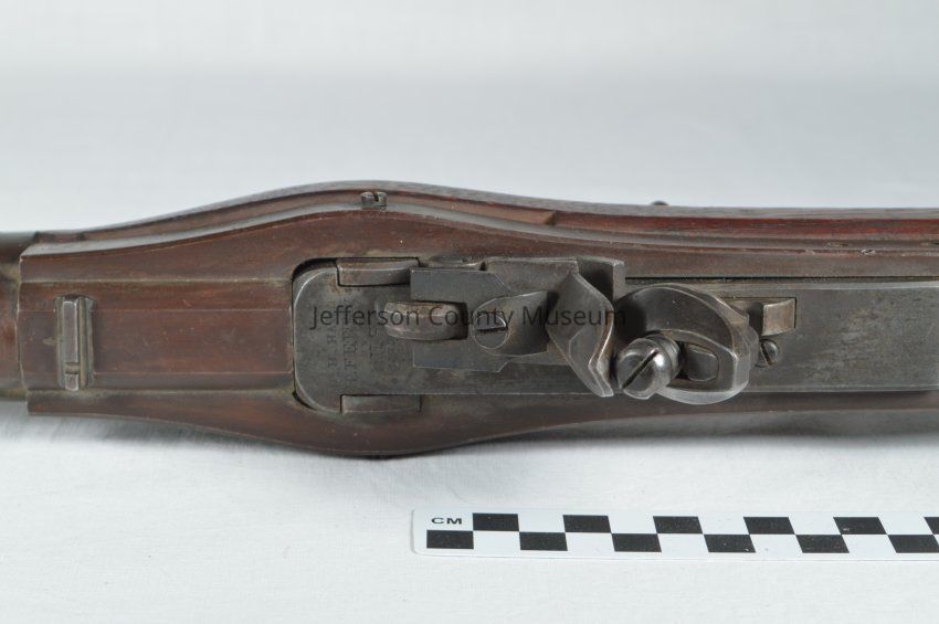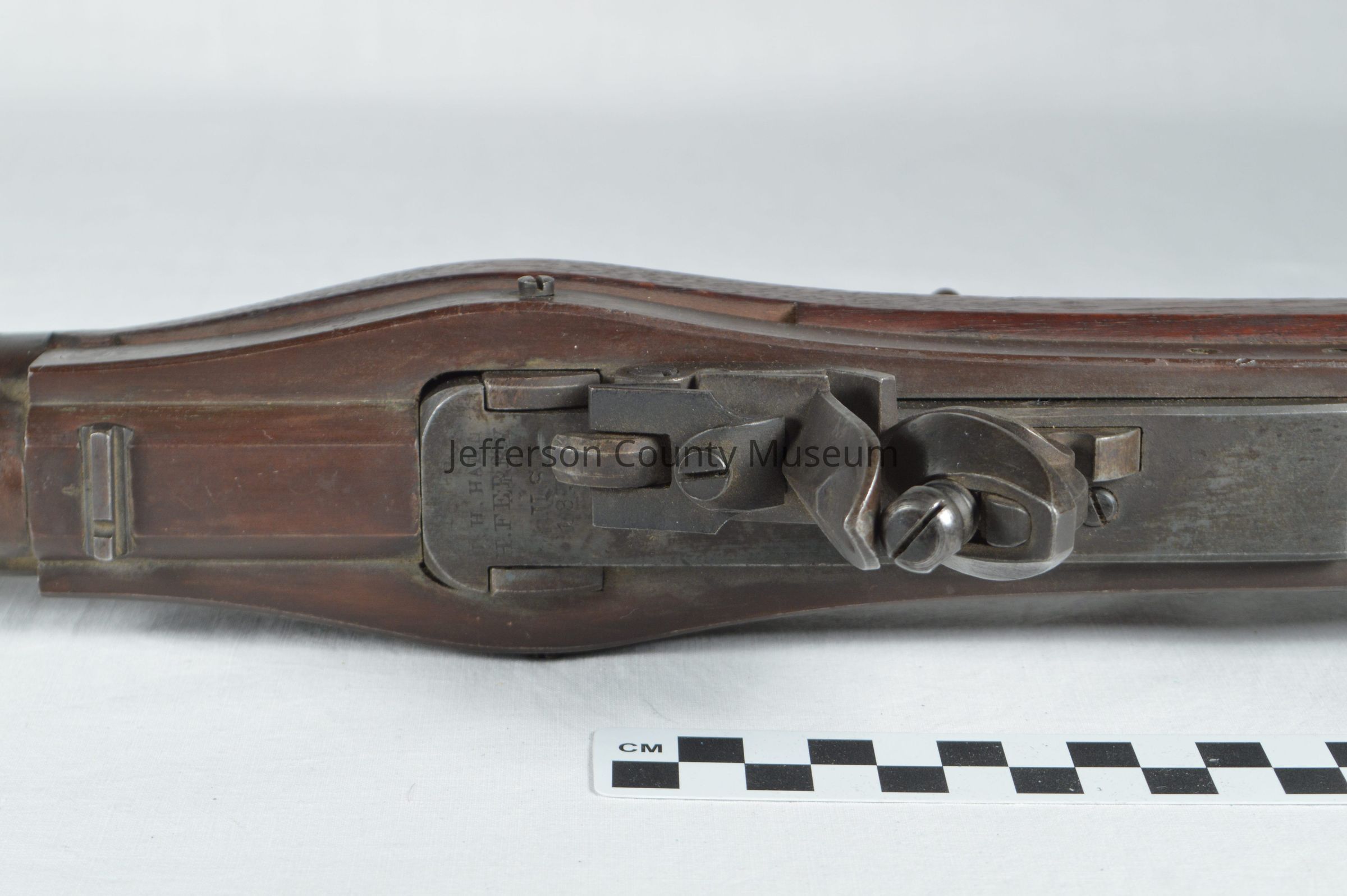 U.S. Model 1819 Hall breech-loading flintlock rifle dated 1838. 52 caliber. 32 3/4 barrel length with off set sights. Uses a pivoting chamber breech design and a flintlock ignition system. Made at the Harpers Ferry Armory under John H. Hall's patent. Engraved on breech block is "J. H. Hall H. Ferry US 1838."Acquisition