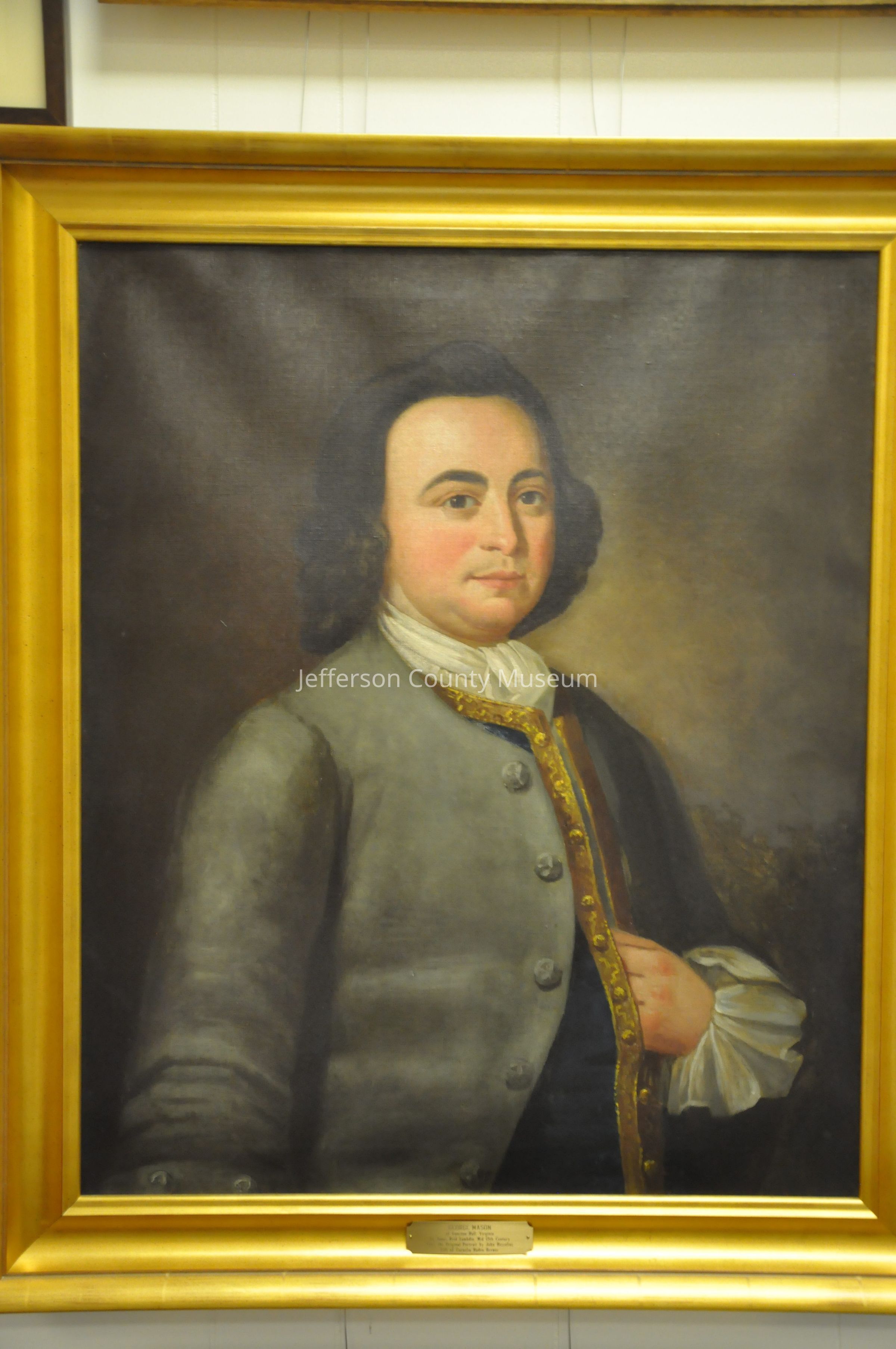 George Mason of Gunston Hall, Virginia, by James Reid Lambdin in gold-toned frame. Brass plaque on bottom frame. Copied from the original by John Hesselius.Acquisition