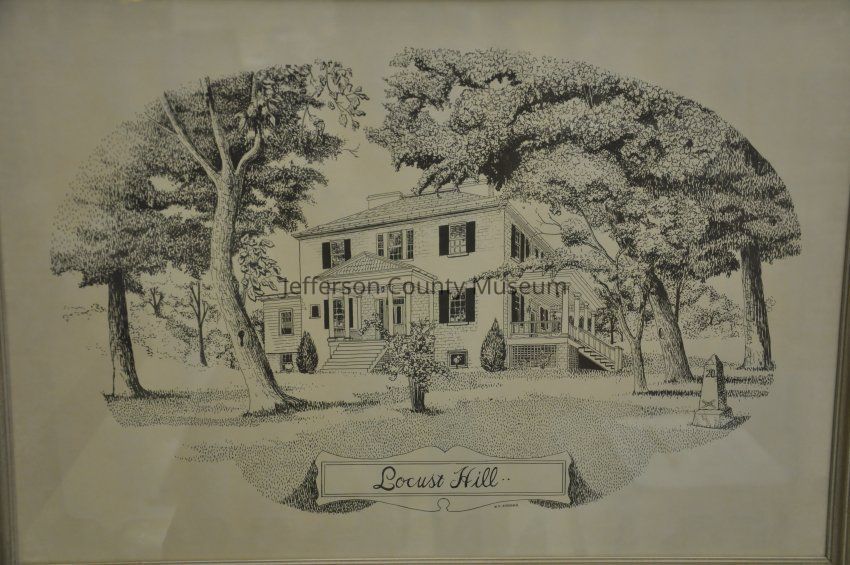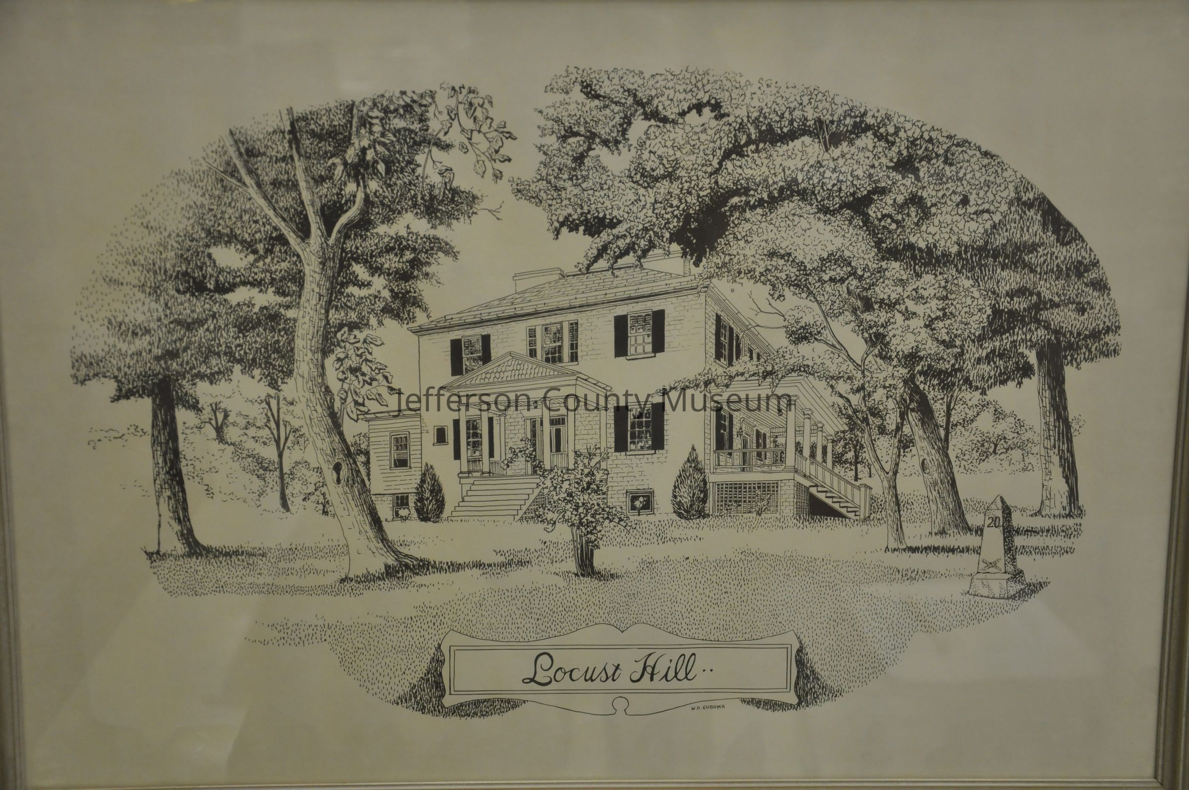 Black and white reproduction drawing of Locust Hill with large trees around it. Marker number 20 shown in yard. At bottom in script: Locust Hill. Below that: W. D. EUBANK.