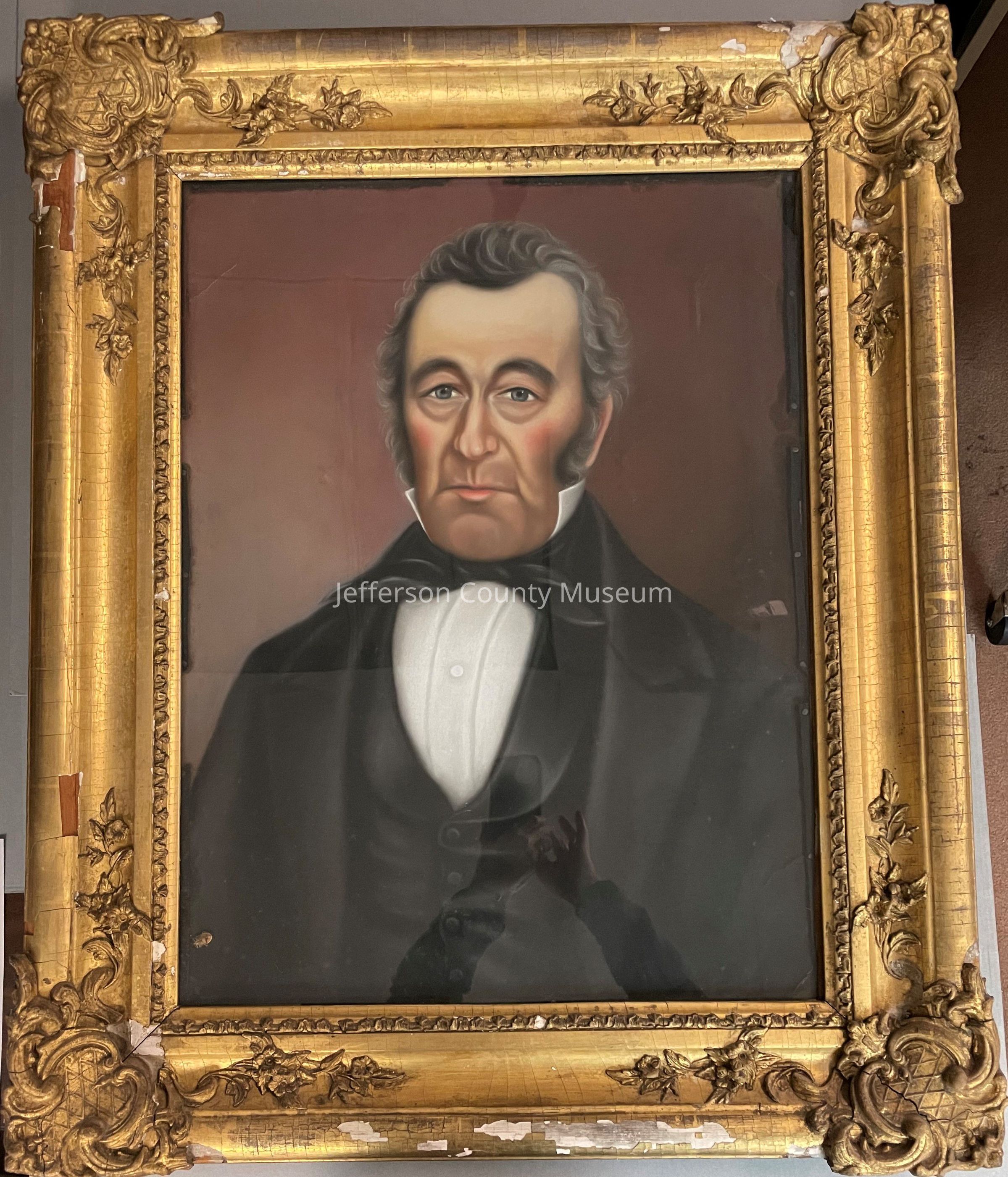 A pastel of Balaam Osburn (1792-1861), owner of Avondale farm near Kabletown. In an ornate, gold, rectangular frame.
