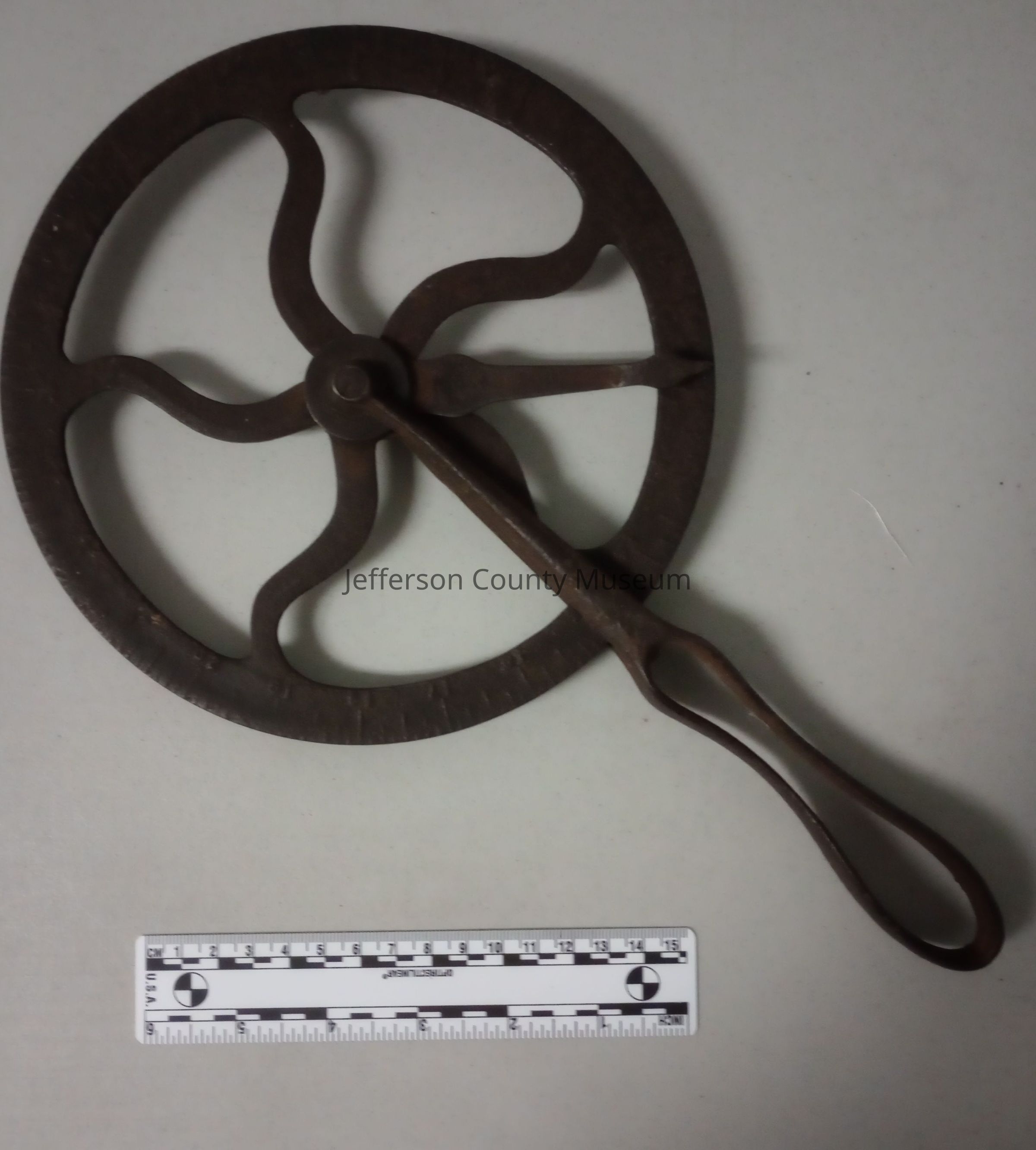 Wheelwrights used this tool to roll around the outside of a wooden wagon wheel to determine the circumference in order to make the iron tire to the right size.Acquisition