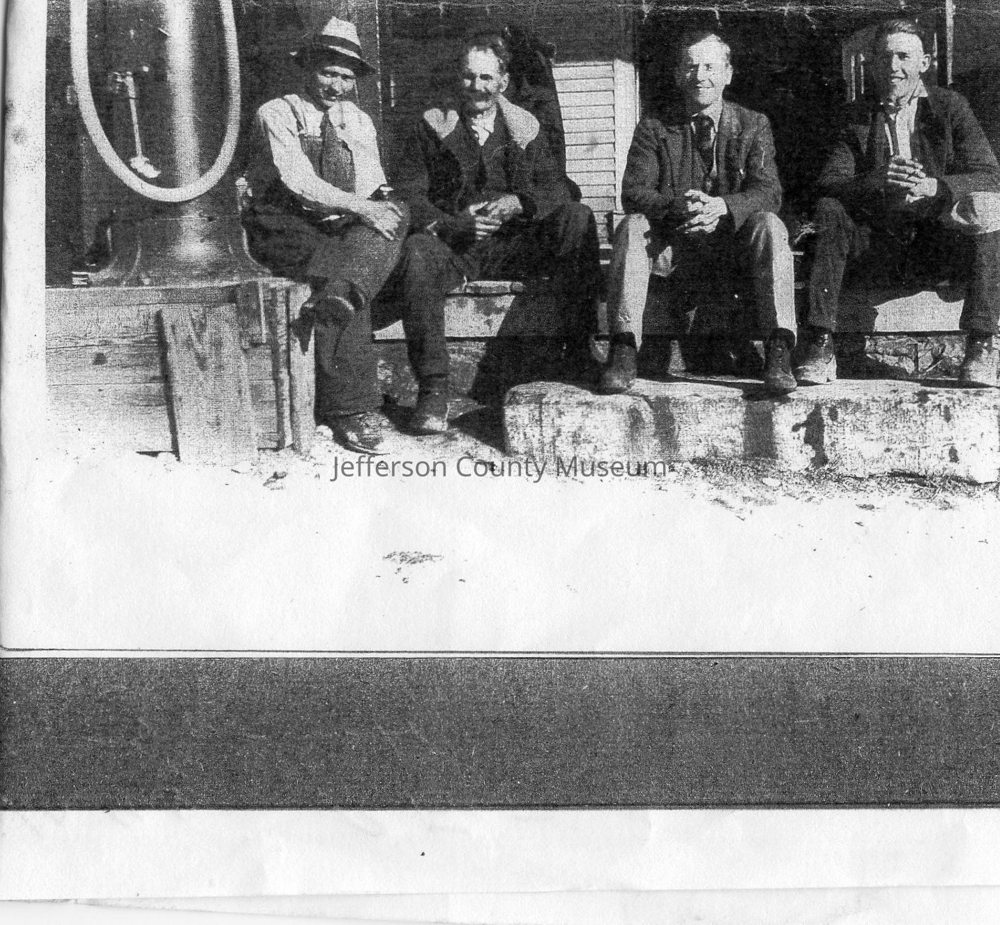 IMG3884-1: Four men sitting in front of Langdon's store.