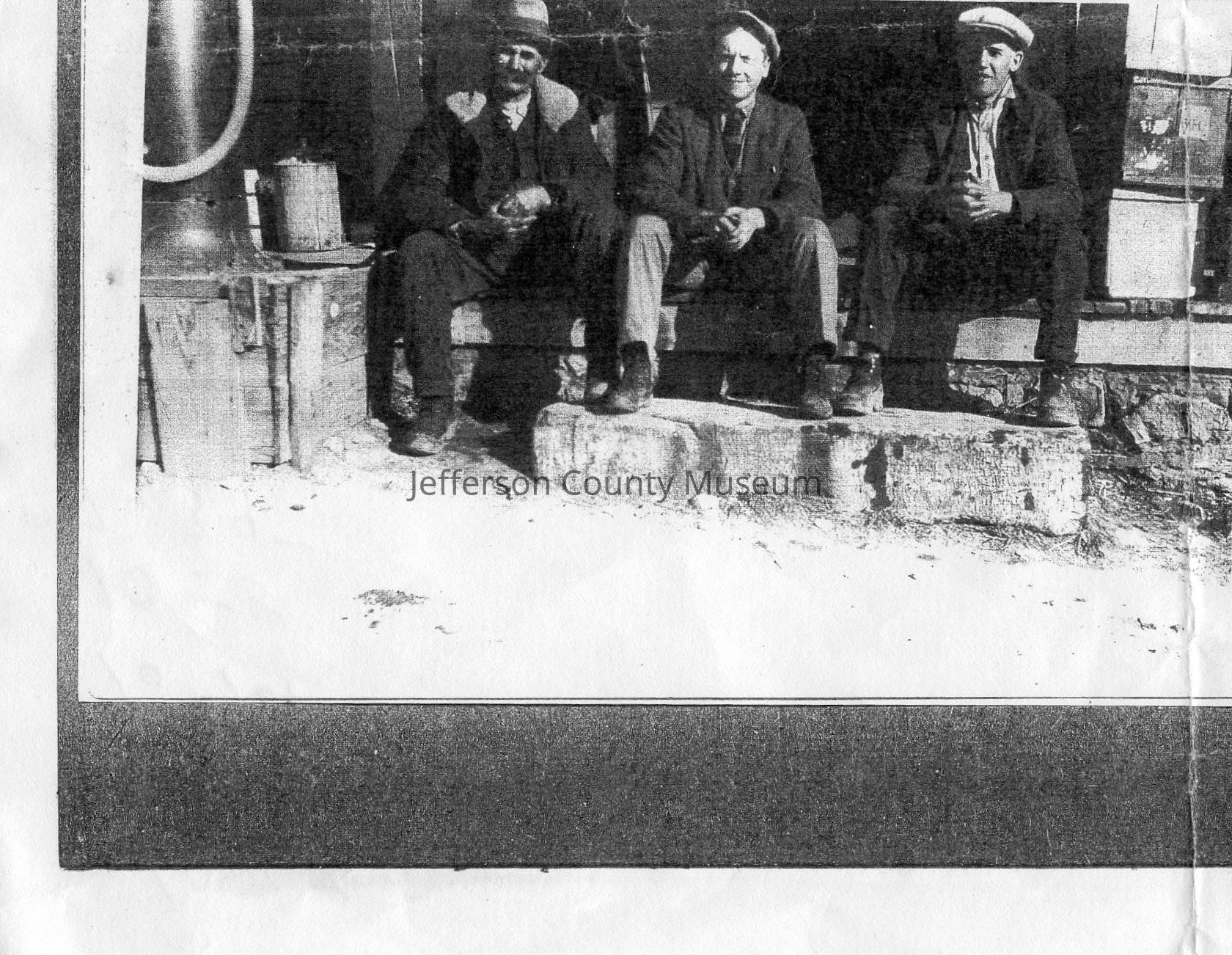 IMG3884-2: Three men sitting in front of Langdon's store.