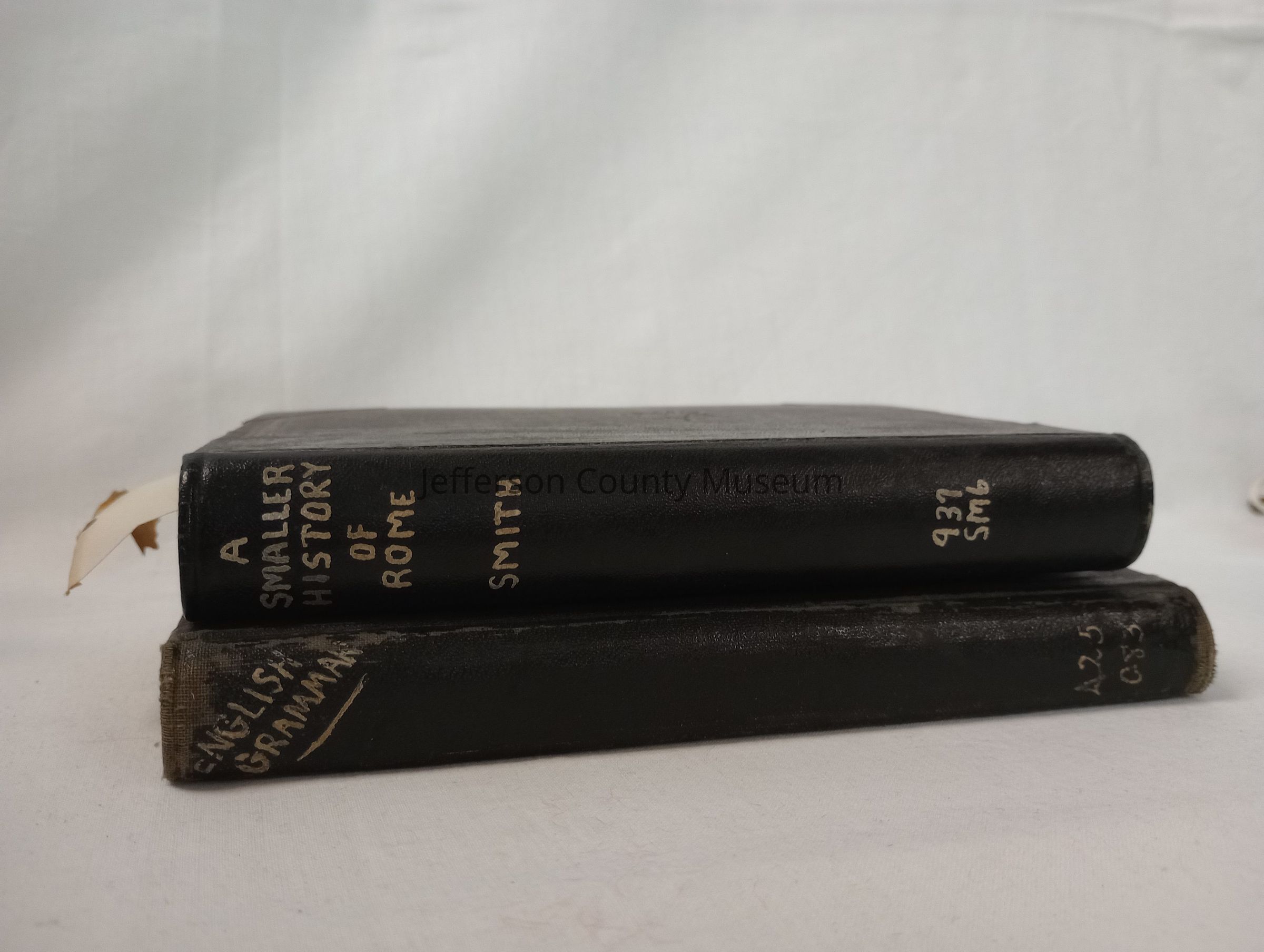 Textbook on English Grammar with stamp on the inside indicating it came from the Roger Williams Library at Storer College. On back cover are cards with most recent names and dates it was checked out, ranging from 1944 to 1955 (the year Storer closed).Acquisition
