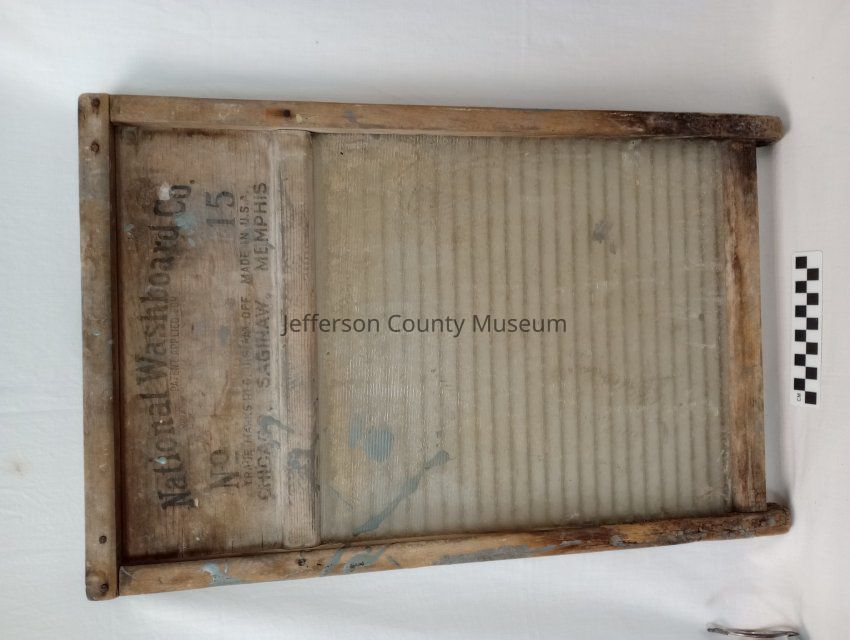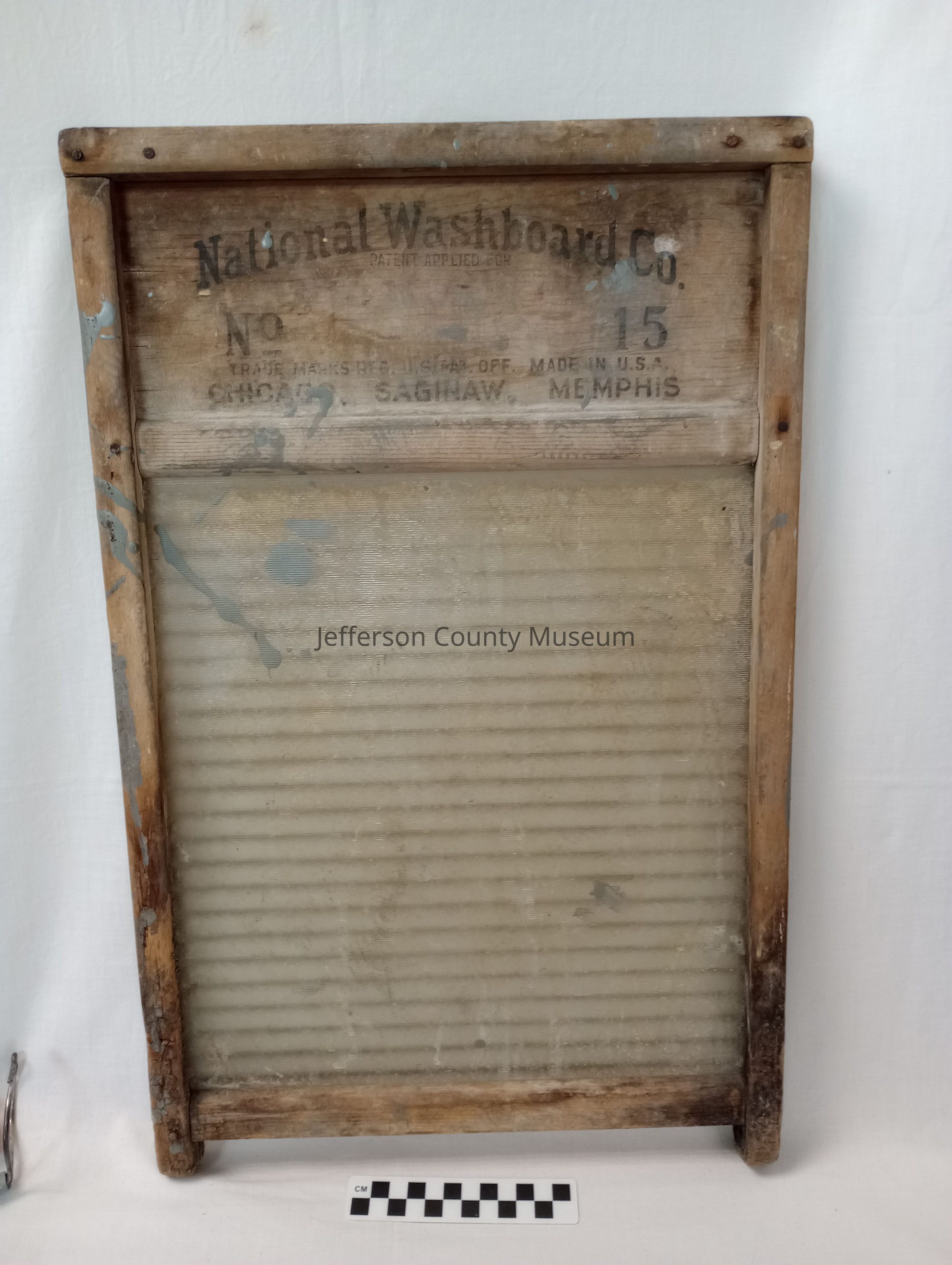 Wood and metal washboard from the National Washboard co. One side says "patent applied for."Acquisition