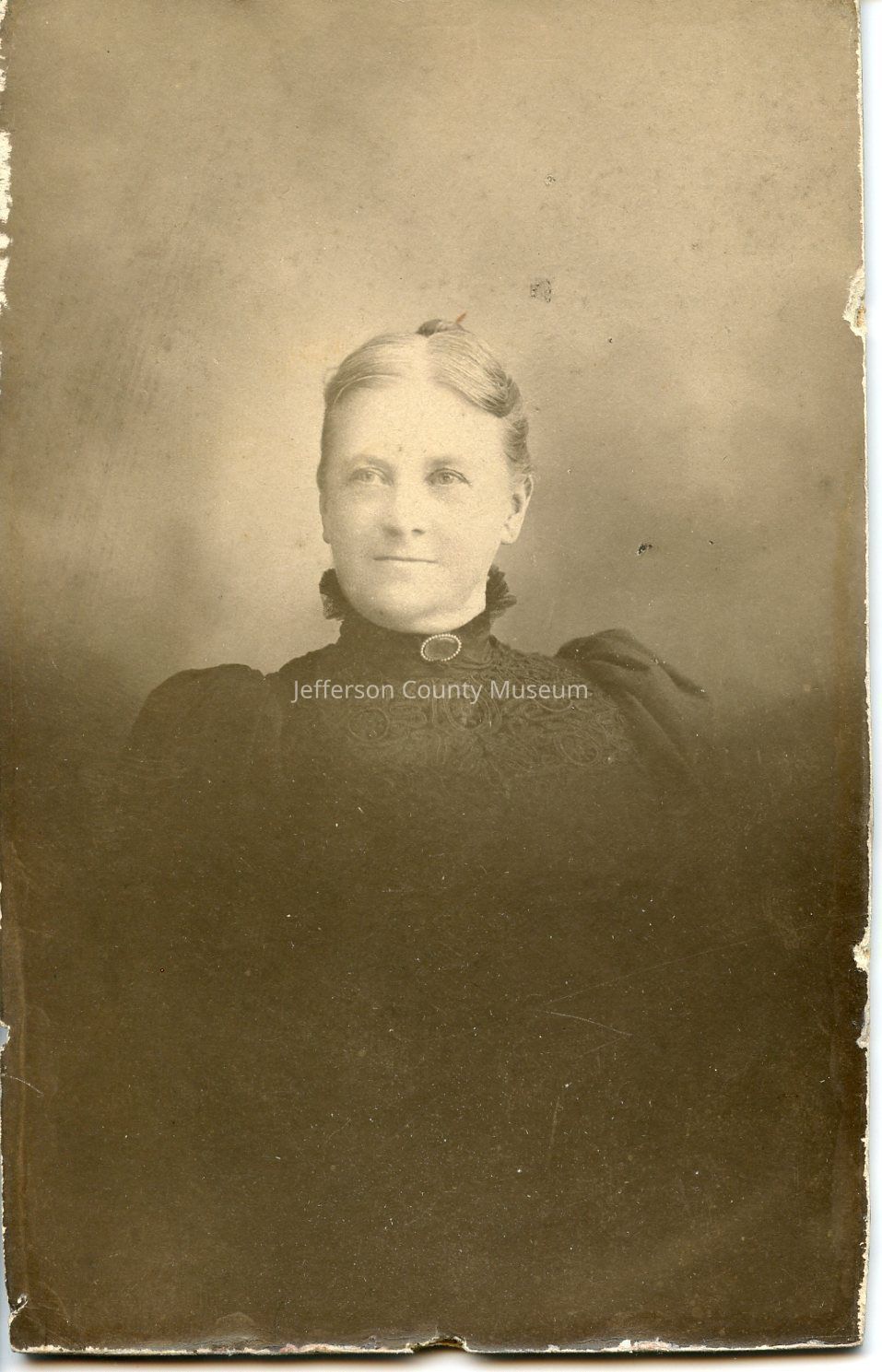 Julia Chew Paca Kennedy (1861-1952) wearing a black high collared dress with brooch at throat.Acquisition